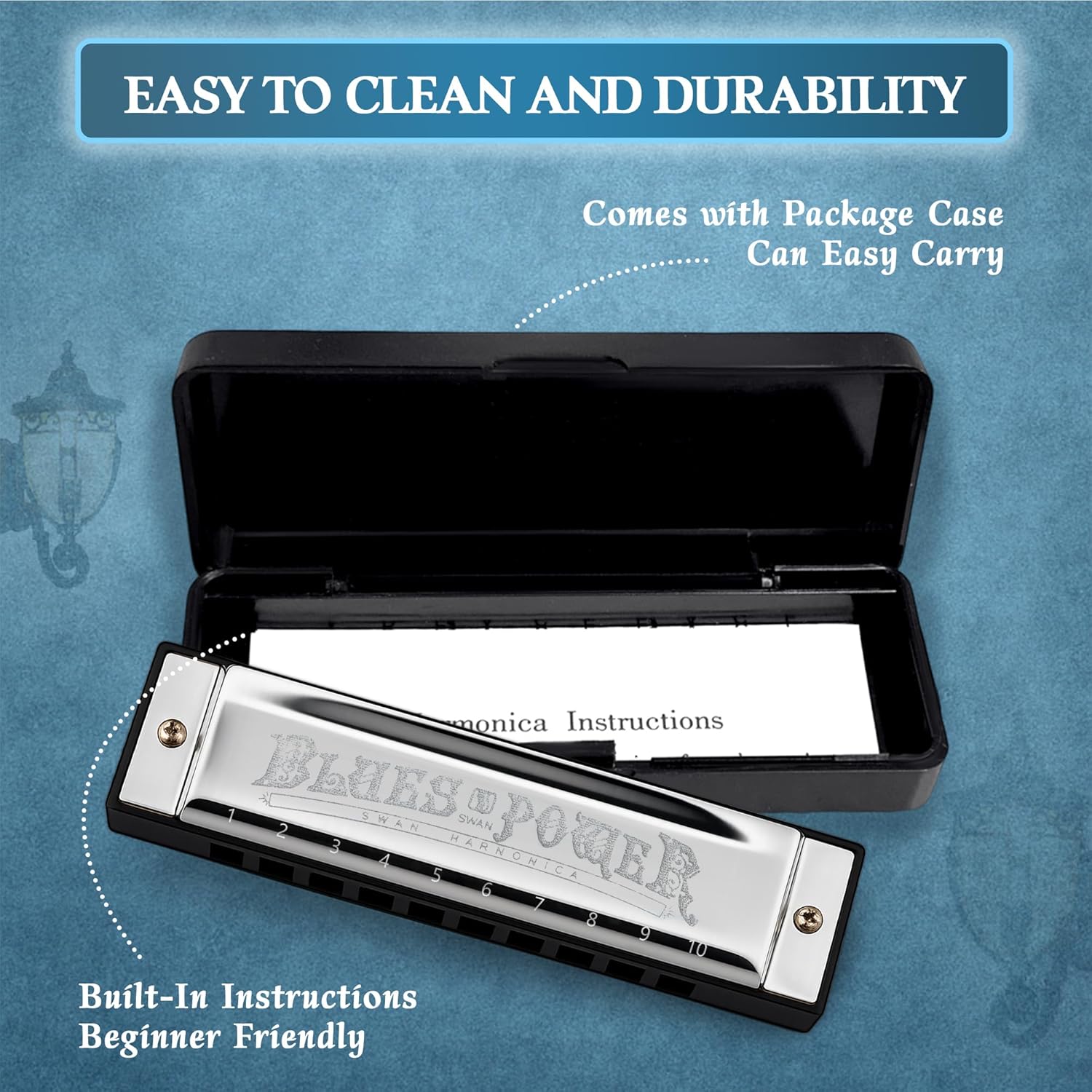 - PREMIUM QUALITY MATERIALS: The SWAN harmonica is constructed with high quality phosphor bronze reeds and ABS resin tone heads to ensure clear, consistent tone.