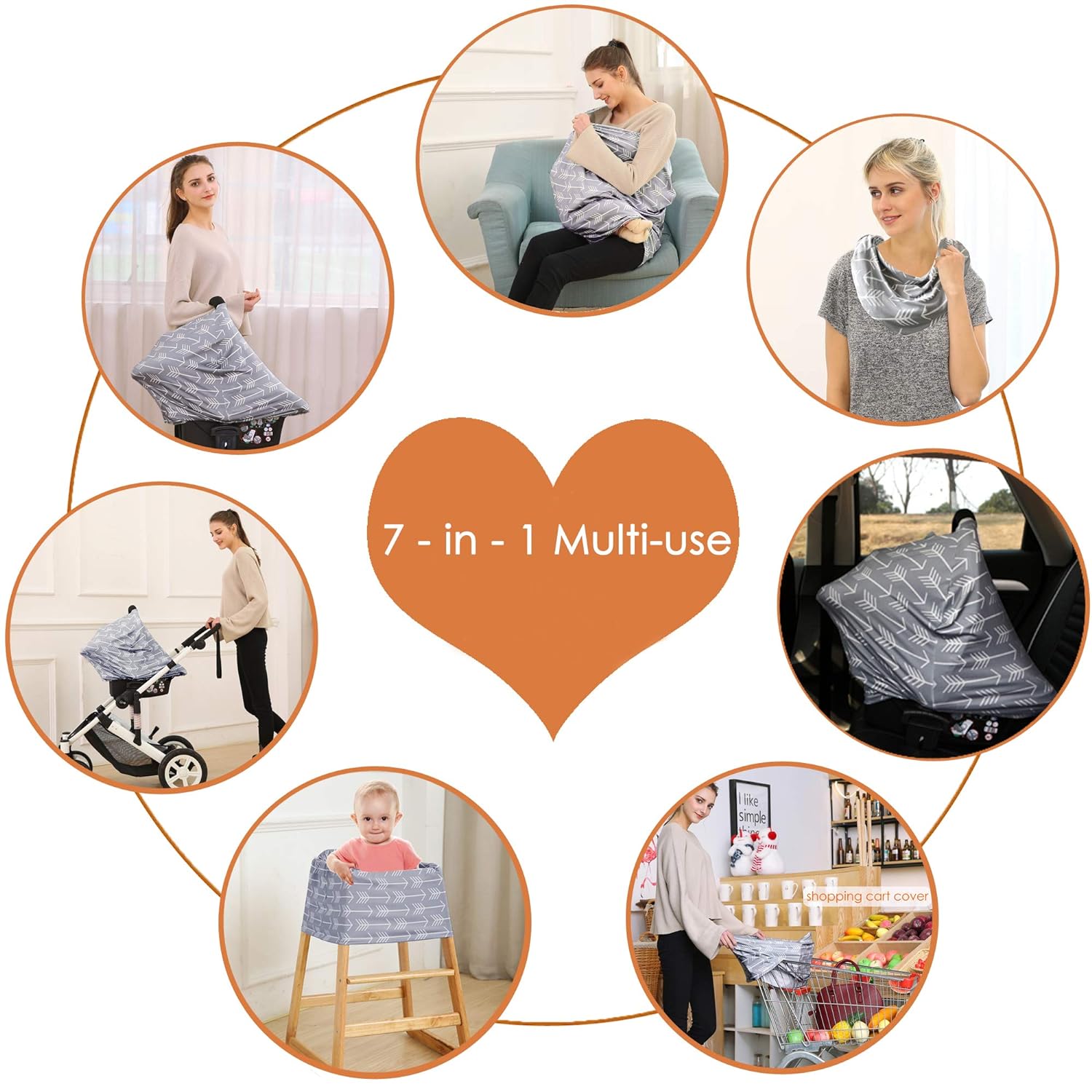 - Multi-use covers for new mothers - carseat canopy, baby car seat cover, stroller sun protection covers, shopping cart cover, feeding chair cover, carrier sunshade.