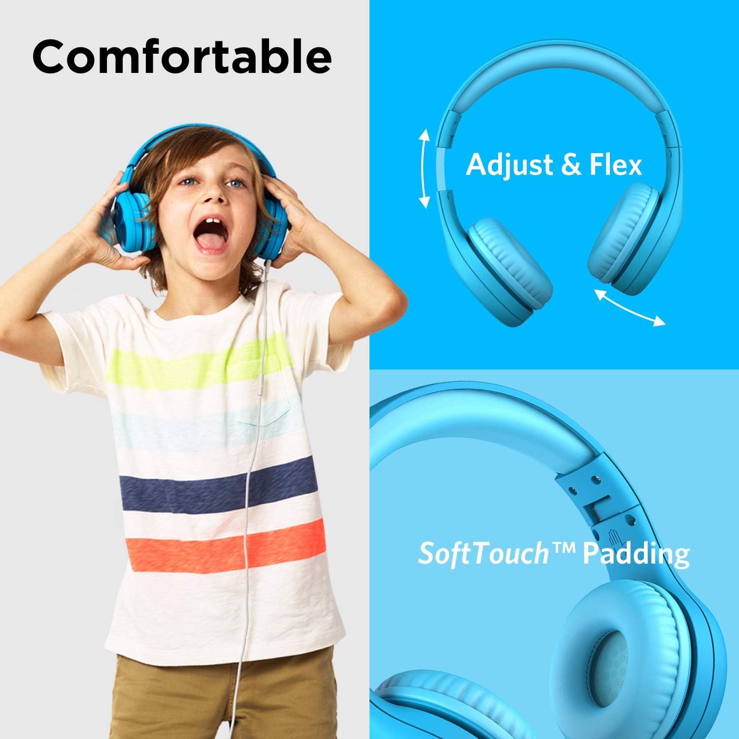 - Back To School Essential: Our kids headphones with cord feature SoftTouch padding for ultimate comfort during long listening sessions, making them an ideal Back-to-School 2025 accessory for students. Perfect for school headphones for kids and travel