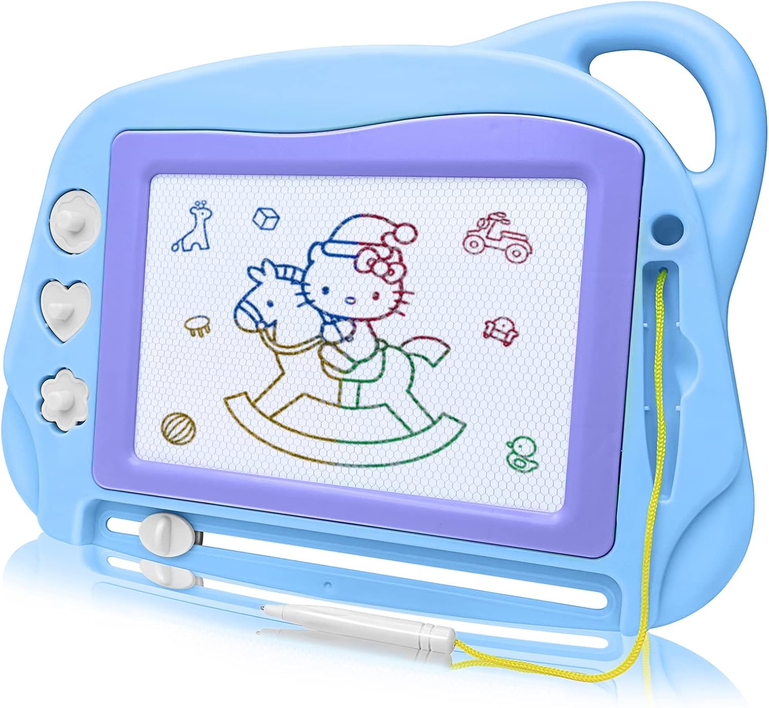 AiTuiTui Magnetic Drawing Board Mini Travel Doodle, Erasable Writing Sketch Colorful Pad Area Educational Learning Toy for Kid/Toddlers/Babies with 3 Stamps and 1 Pen (Sky Blue)