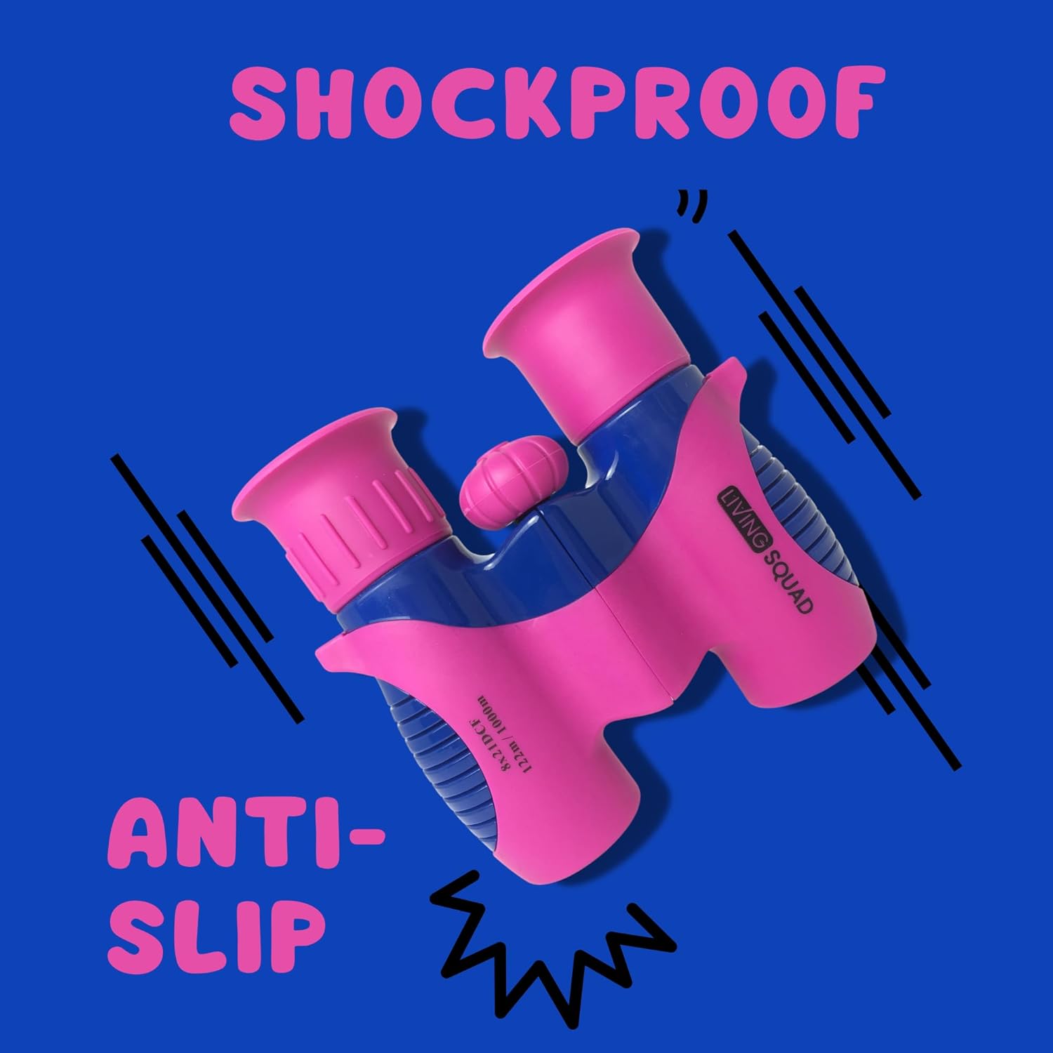 Kids Binoculars 8x21 Pink- Girls Age 3-12, Shock Proof Compact Binoculars for Kids Set- Neck Strap, Compass, Carabiner, Case- High-Resolution Optics Child Gift Toy for Bird Watching, Hiking, Spy