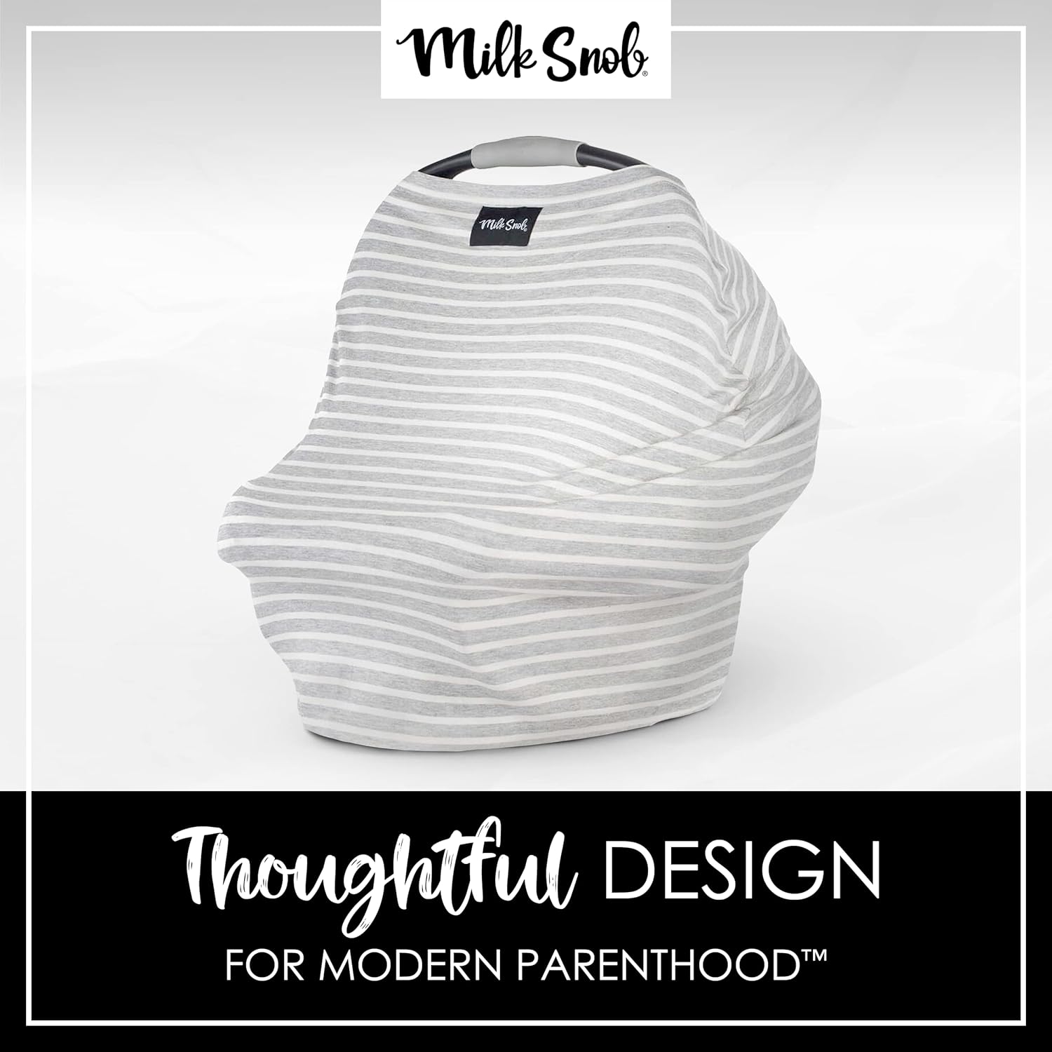 Milk Snob Original 5-in-1 Cover - Added Privacy for Breastfeeding, Baby Car Seat, Carrier, Stroller, High Chair, Shopping Cart, Lounger Canopy - Newborn Essentials, Nursing Top, Heather Gray Stripe