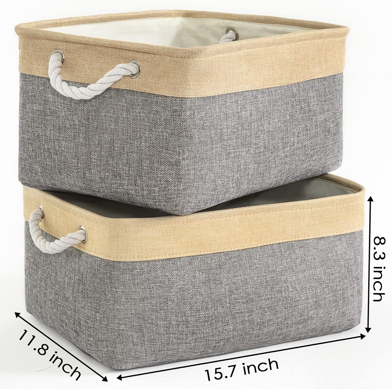 - LARGE STORAGE BIN & PROFESSIONALLY & PRACTICAL - 15.7L×11.8W×8.3H, can be used as storage baskets for shelves,closet storage bins, linen closet organizer,nursery basket storage,laundry baskets, bathroom towel storage,also can organizing baby Stuff,clothing, kid’s toys,pet toy products, laundry, towel, bedsheet,sport gears,suitable use in bedroom, living room,study room,rest room,bathroom, kitchen,office,shelf,closet and cabinets. excellent choice for keeping your space nice,tidy and organized