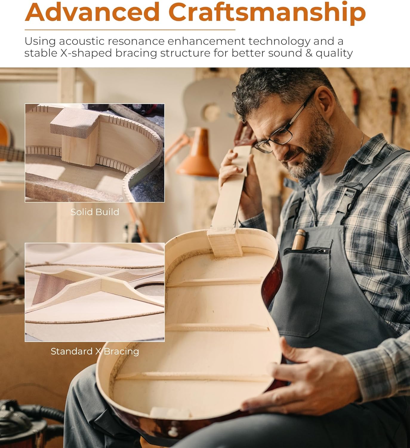 - ✅ [Bright Warm Sound] The 36 Inch acoustic guitar features an improved AAA spruce top, Sapele sides & back producing a brighter sound at high frequency and warmer tone at middle frequency. The Orchestra model body offers the acoustic guitar a clear and outstanding sound, a well-balanced tone at high frequency. Perfect for fingerstyle, country, and blues music genres