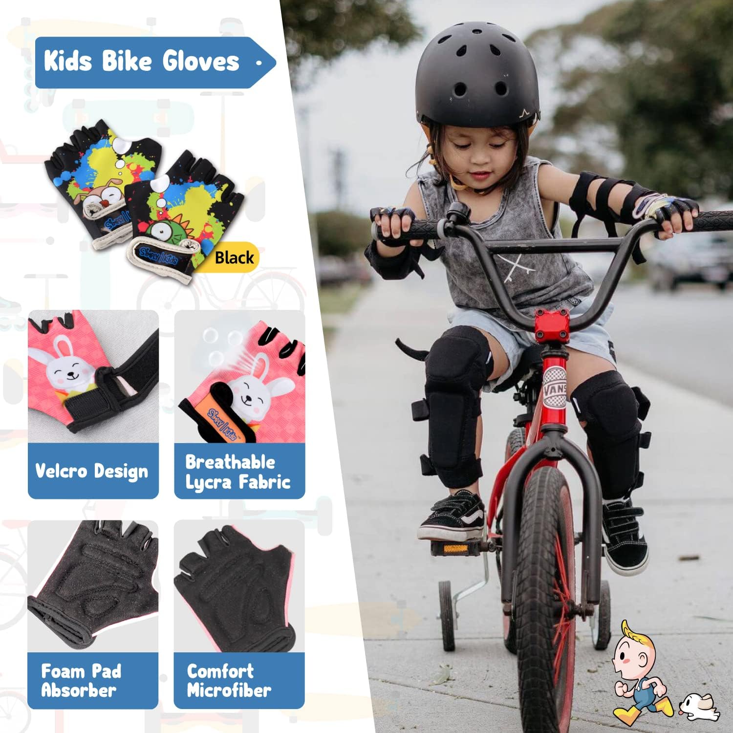 Soft-Style Kids Knee and Elbow Pads with Bike Gloves, Flexible Impact-Resistant Gear for Ages 2-11, Designed for Balance Bikes, Roller-Skating, and Skateboarding
