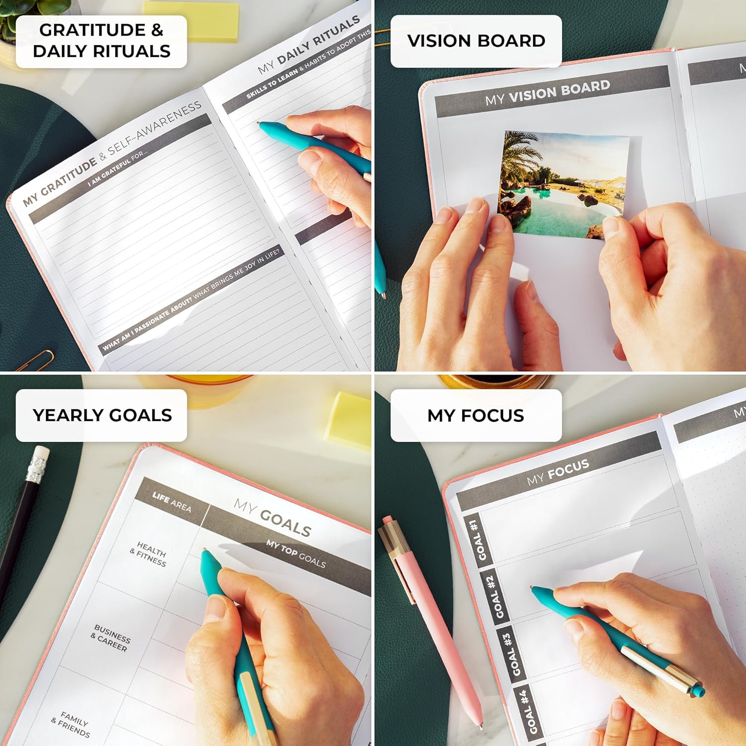 - DAILY, WEEKLY & MONTHLY PLANNING / REVIEW: Use detailed daily, weekly, and monthly planning pages to plan your agenda, set goals, and track habits. The planning notebook also has weekly reviews will regularly evaluate your progress.