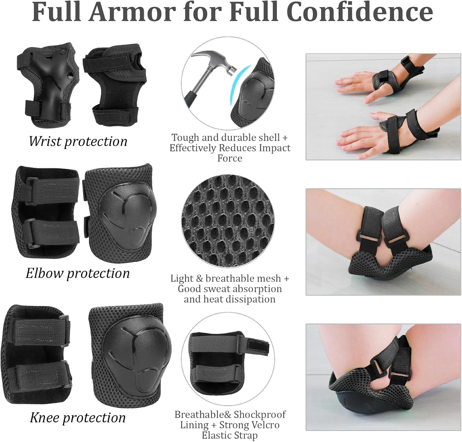 - 【7 pcs Kids Helmet Protective Gear】- Including 1 bike helmet, 2 x Elbow Pads, 2 x Knee Pads, 2 x Wrist Pads. Consist of anti-scratch extra hard ABS shell for hard protection, and adjustable straps ensure the protective gear will not shift. Provides your kids comfortable and safe, A great gift for toddler and kids age 3-8 years old