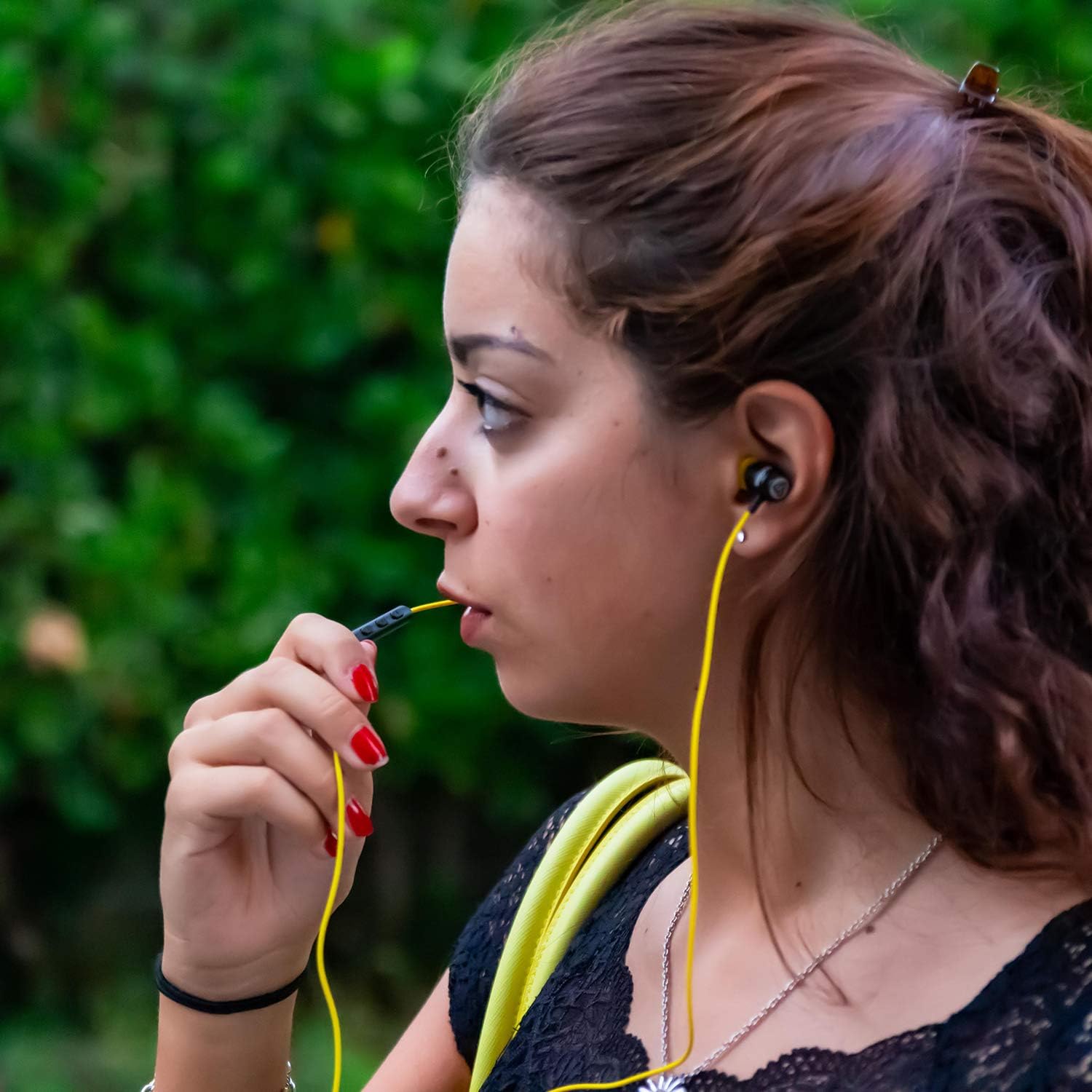 LUDOS Clamor Wired Earbuds in-Ear Headphones, 5 Years Warranty, Earphones with Microphone, Noise Isolating Ear Buds, Memory Foam for iPhone, Samsung, School Students, Kids, Women, Small Ears - Yellow