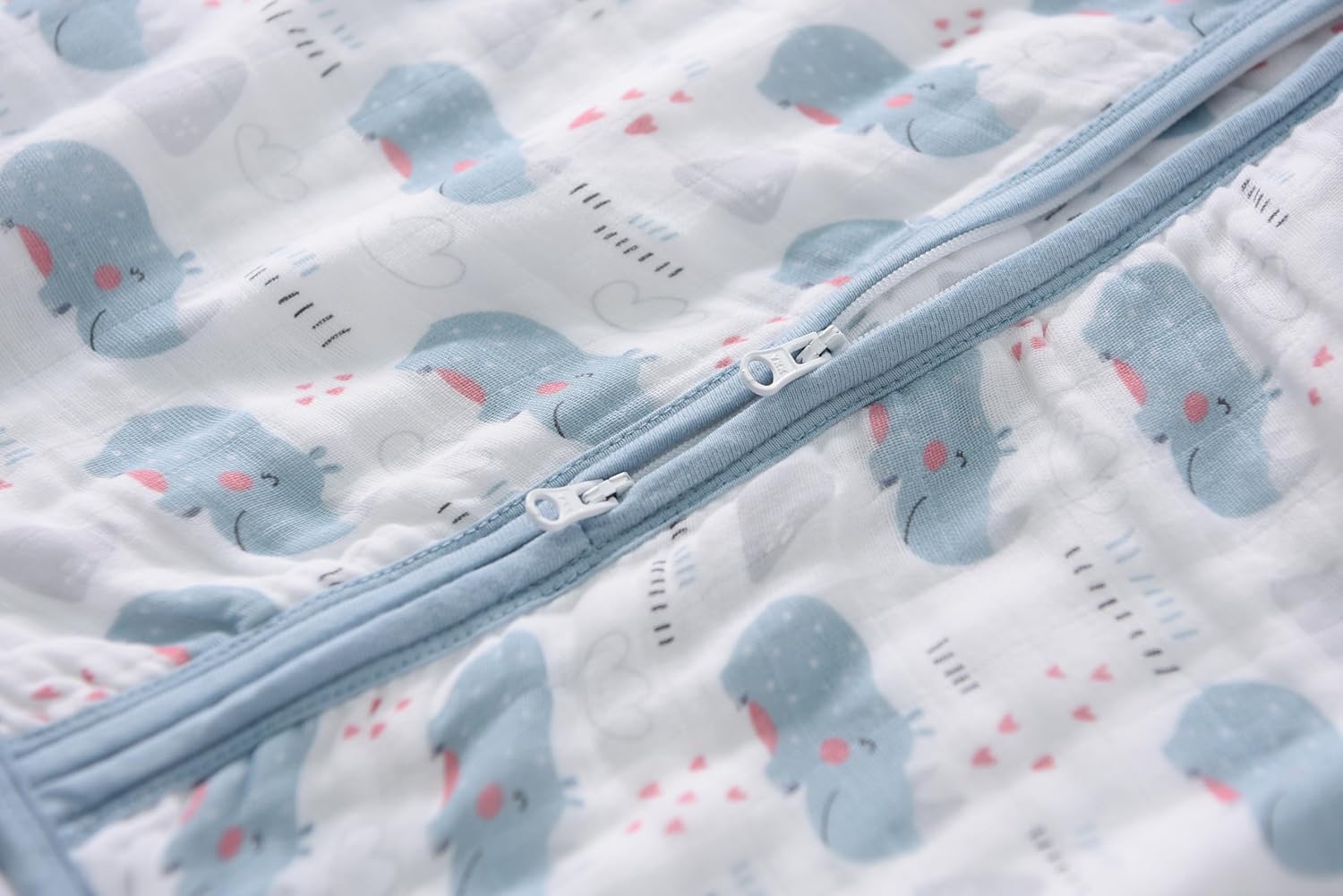 - 100% Organic Cotton: Crafted from 100% organic cotton and featuring four layers of soft cotton gauze, this toddler sleeping sack has a 0.5 TOG rating that delivers warmth while promoting breathability, making it ideal for year-round use. The muslin material is more breathable and softer than knit fabrics, ensuring a peaceful and comfortable night's sleep for your baby.