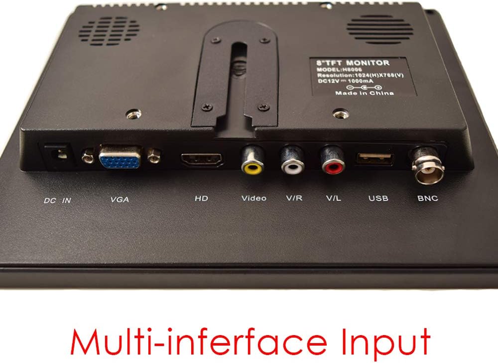 8 inch CCTV Monitor, TFT LCD Security Screen with VGA HDMI AV BNC USB Audio in/Out Ports Built-in Speaker, HD Display for Surveillance Camera STB 1024x768 Resolution with Car Power Adapter 12-24V