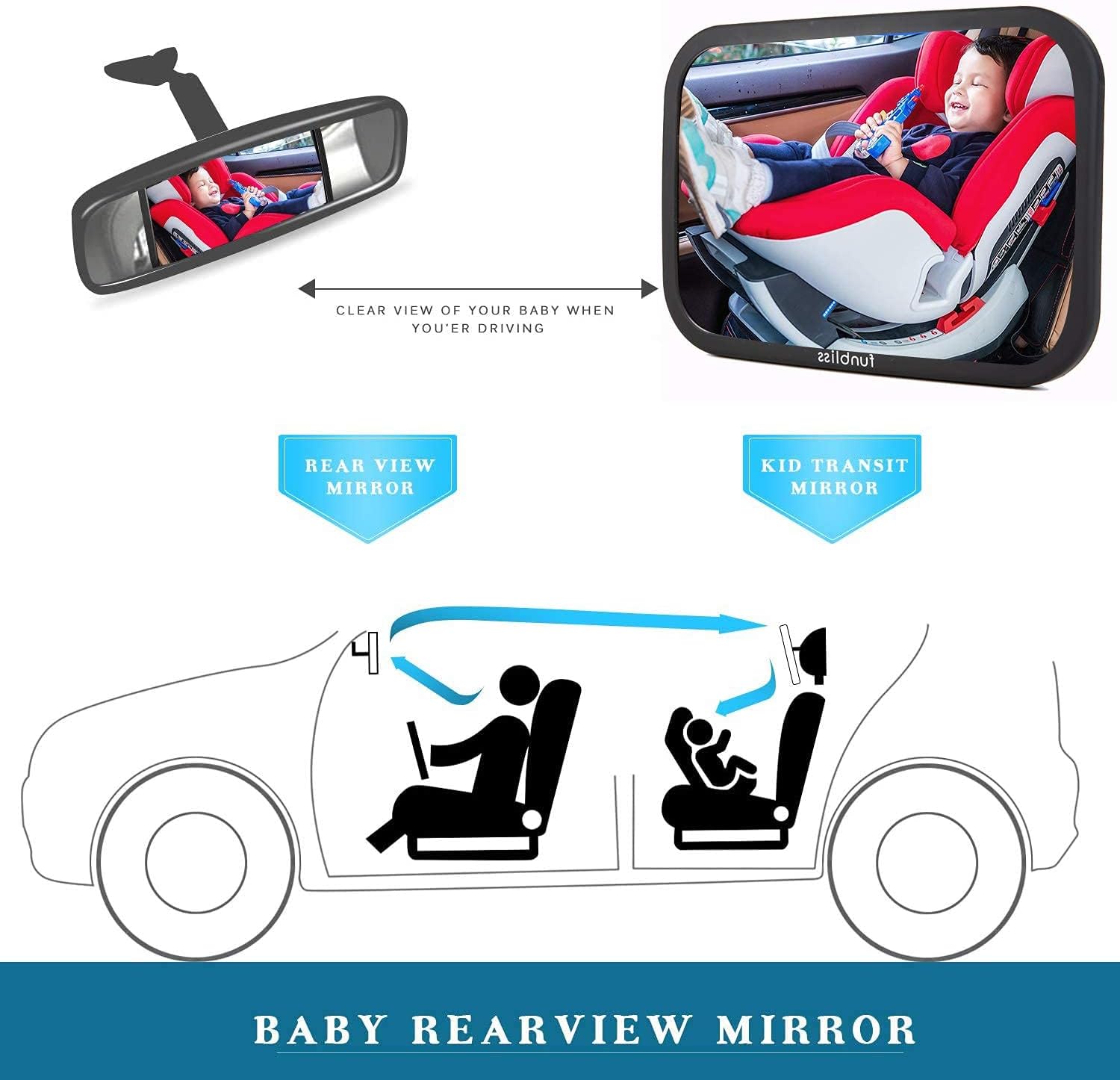 - ❤Shatteproof design & STEADY CONSTRUCTION: This carefully designed shatterproof baby backseat mirror for car is made of shatterproof glass and features an extra durable strapping system to ensure that the mirror will firmly stay in place even through bumpy roads. Your angel’s safety is our #1 priority!