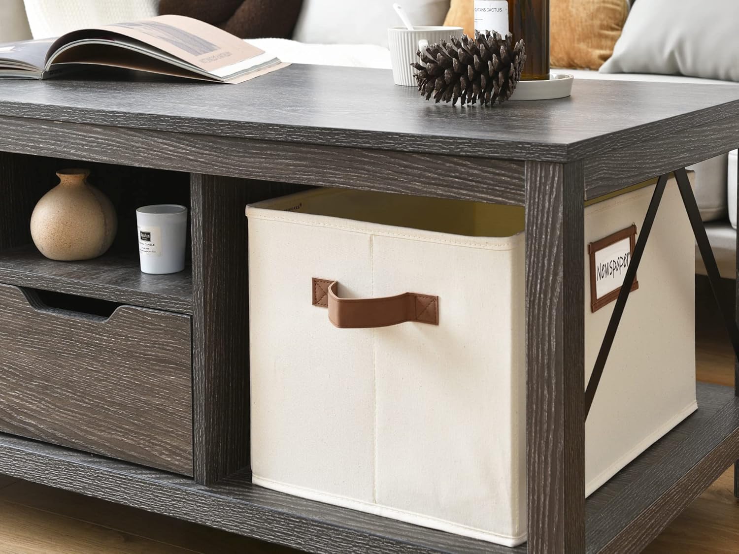 - The natural canvas fabric and the inserted heavy-duty boards of the storage bins allow them to support a weight of up to 30 pounds.