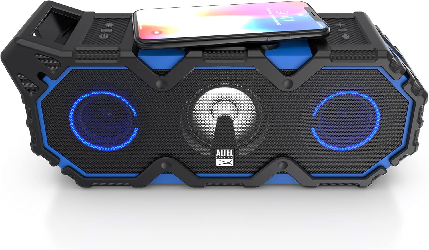 Altec Lansing Super Lifejacket Jolt - Waterproof Bluetooth Speaker, Durable & Portable Speaker with Qi Wireless Charging and Customizable Lights, Wireless Speaker for Travel & Outdoor Use