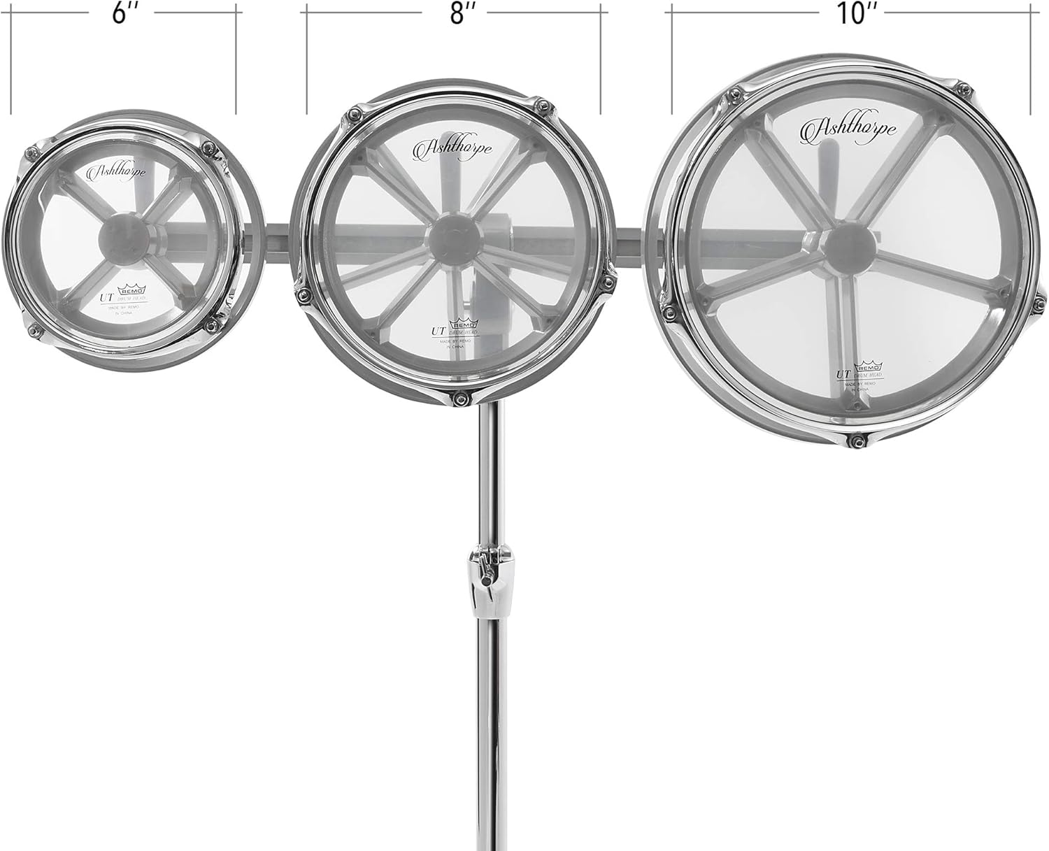 Ashthorpe Roto Tom Drum Set with Stand - 6", 8", 10" Toms with Remo Heads