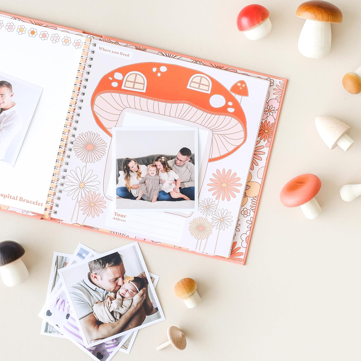 - Groovy Baby Memory Book for Stylish Parents: Celebrate her sweetest moments with this retro-inspired Flower Child baby memory book filled with pastel daisy prints and playful floral motifs. Designed with a boho-chic aesthetic, our scrapbook-style first year book adds a vibrant touch to baby girl milestones—perfect for moms who adore feminine, flower child vibes and want a keepsake that’s as beautiful as their little one’s journey.