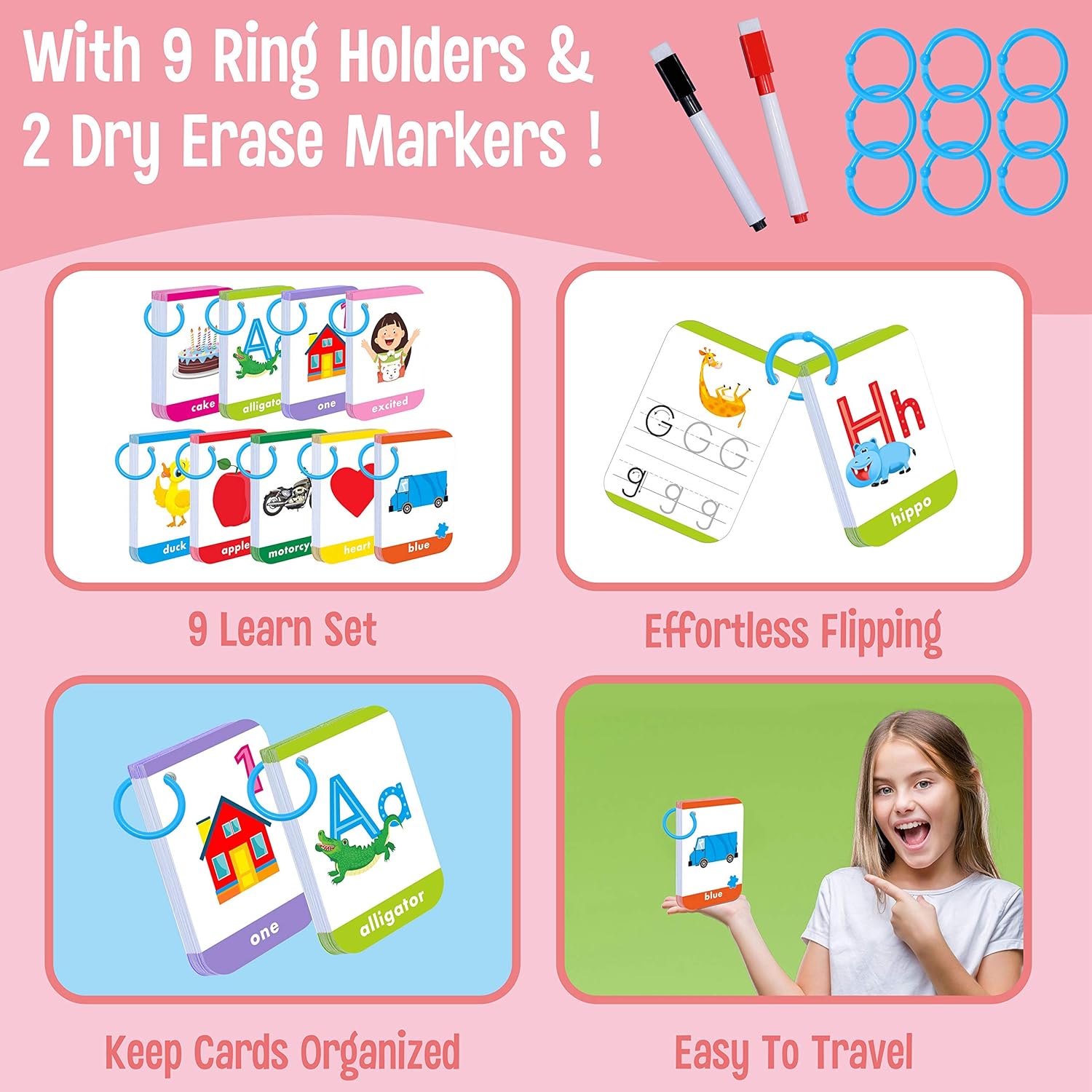 - Easy To Use: The flashcards are made of high quality film with smooth coating. Hole-punched cards can be separately classified into 9 groups by using rings, which can facilitate better organization and help children keep tidy.
