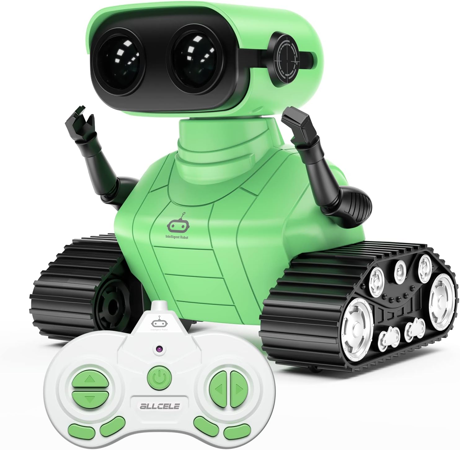ALLCELE Robot Toys, Rechargeable RC Robot for Boys and Girls, Remote Control Toy with Music and LED Eyes, Gift for Children Age 3 Years and Up - Green