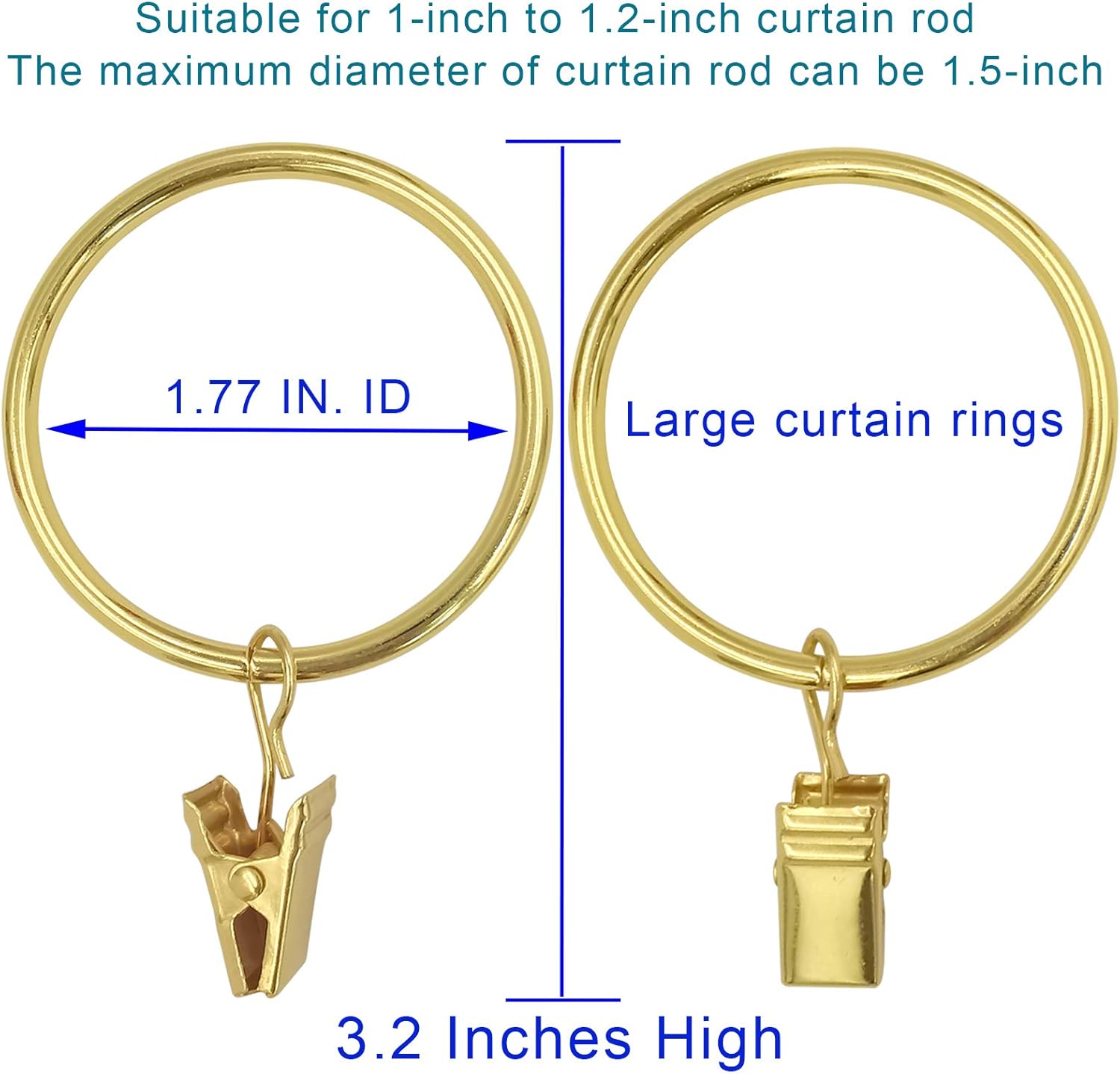 - 【Curtain Rings Slide Easily】Curtain rings eyelet inner diameter 1.77 in, drapery rings with clips for used in ones 1.2 in curtain rod and that’s the perfect size, the curtains slide easily, multiple times a day and function perfectly, make your life full of fun.