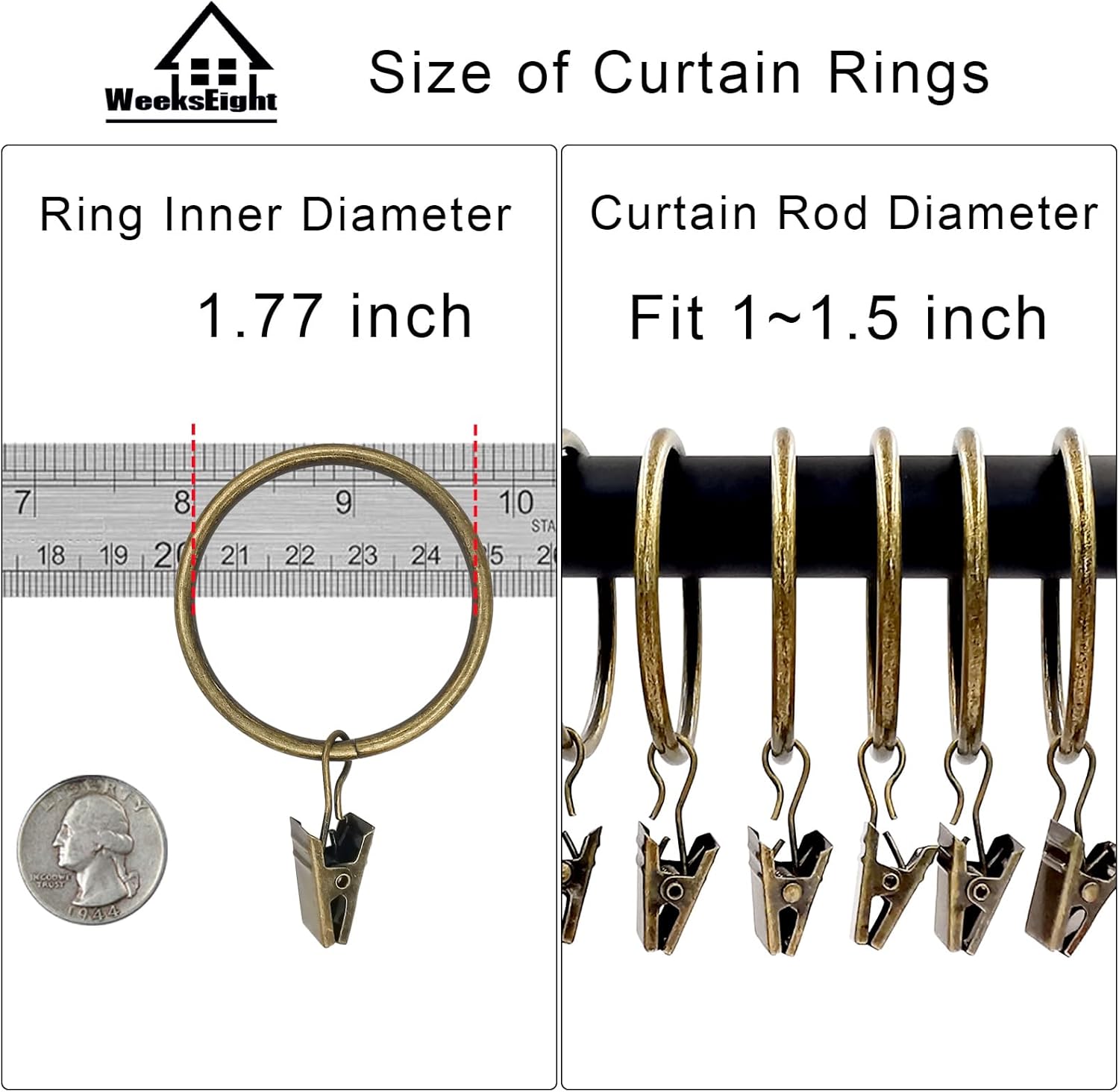 - 【Please Note】This rings fits 1.5 in or smaller diameter drapery rod, The clip is a little tight when it is opened for the first time, and it will be easy to open it when it is used again.
