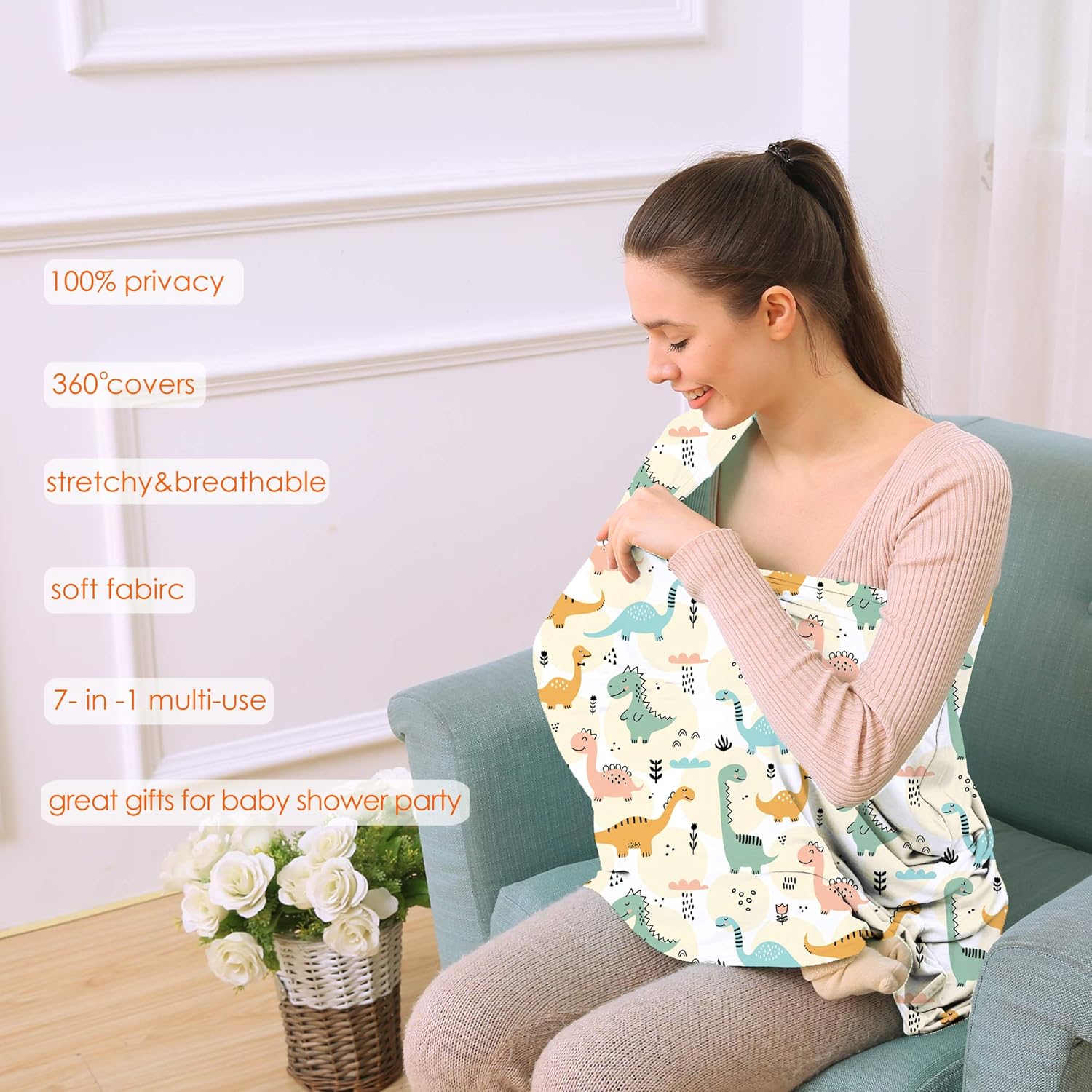 Multi-use Carseat Covers Breastfeeding Cover - Car Seat Covers for Babies, Stretchy Carseat Canopy Cover, Boys and Girls Shower Gifts (Colours Dinosaur)
