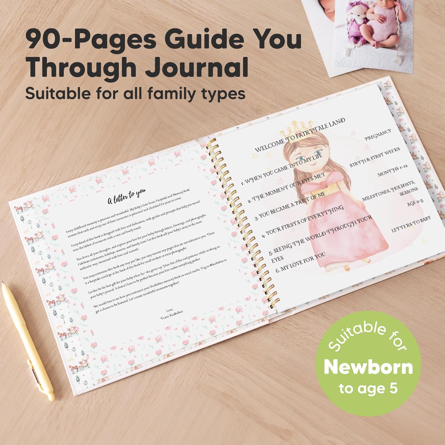 First 5 Years Baby Memory Book Girl, Boy - 90 Pages Hardcover First Year Milestone Keepsake Book, Newborn Scrapbook for New Parents, Minimalist Photo Album Journal,Gift for Baby Shower(Fairytale Land)