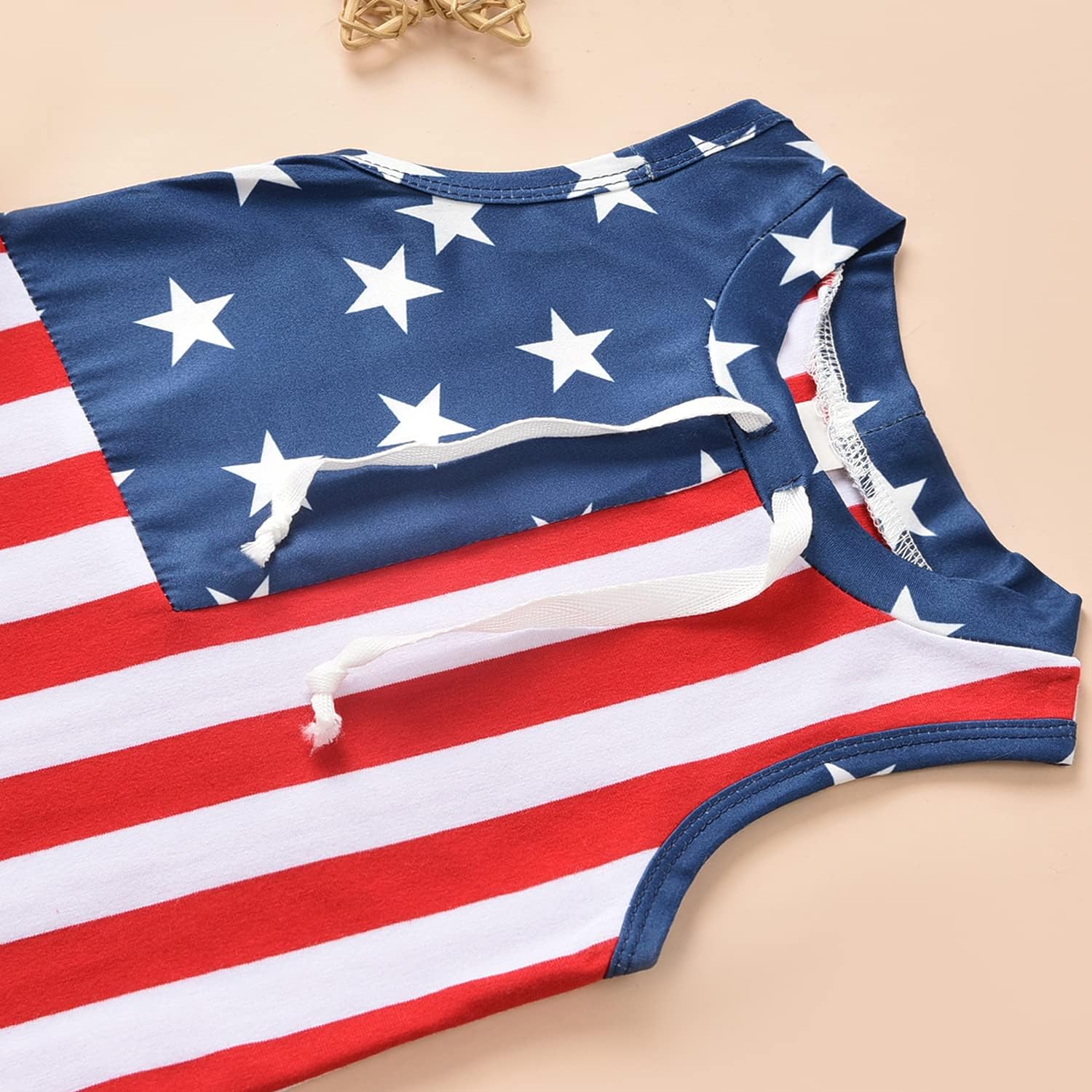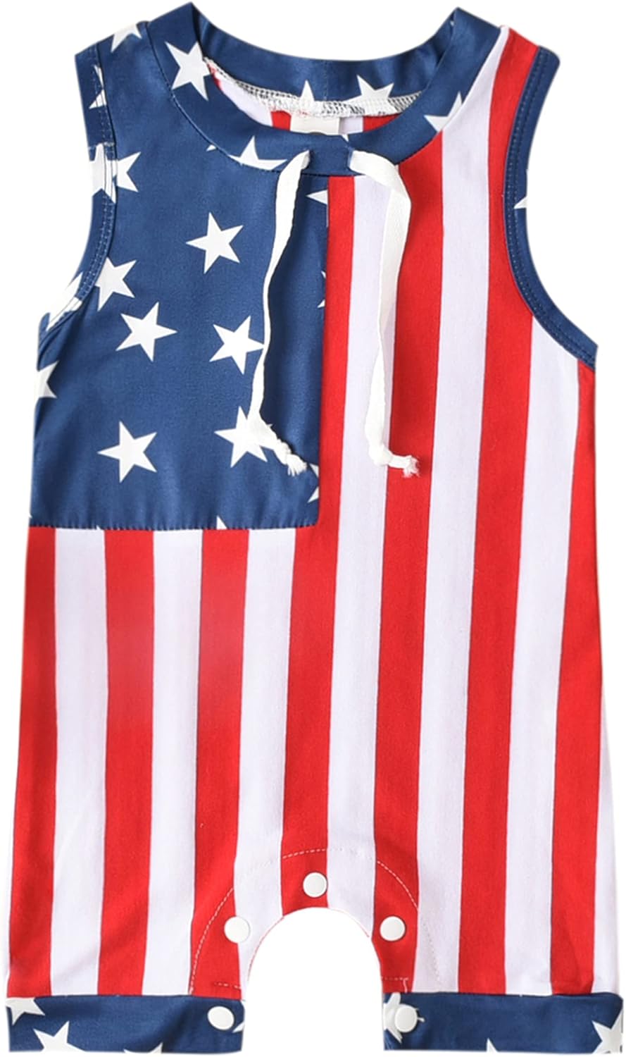 • Design: Trendy sleeveless footless design. Fourth of July theme American flag printed playsuit. Fashion design make your babies more energetic!