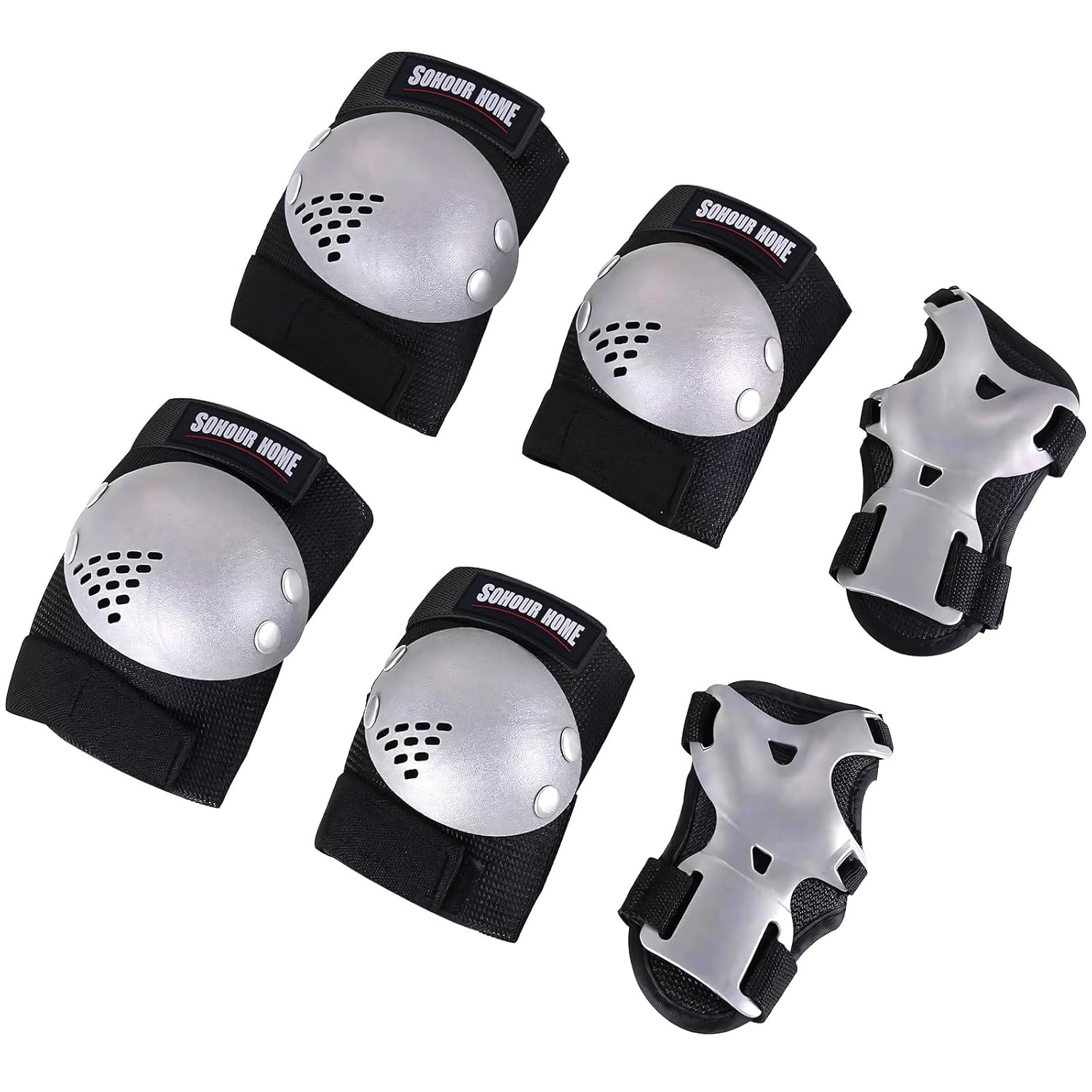 - 🌸【Recommended Age for Kids 】SOHOUR HOME Kids Knee Pads and Elbow Pads 6 pack contains: 2 pcs Knee pads /2 pcs Elbow Pads / 2 pcs Wrist Guards With Portable Breathable Canvas Mesh Bag. Size Suggest: S: for 3-7 Years old, M: for 6-15 Years old.