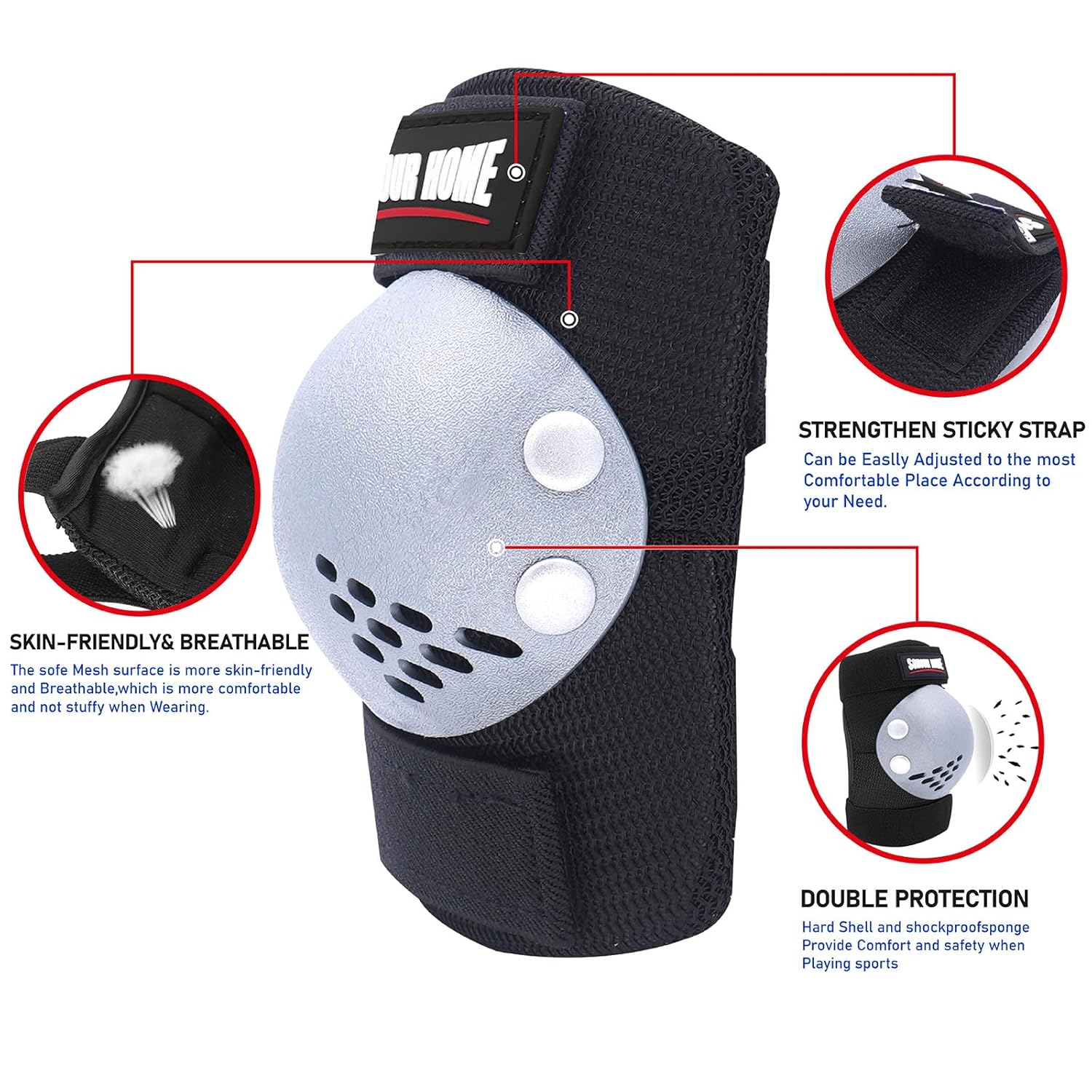 - 🌸【Multifunctional Knee Pads Set】SOHOUR HOME Kids Knee Pads/Elbow Pads/Wrist Guards Protective Gear Set for 3-15 Years Child Roller Skates, Cycling, BMX Bike, Skateboard, Inline Skating, Balance bike, Scooter Riding and Outdoor Extreme Sports Safety Protection Especially.