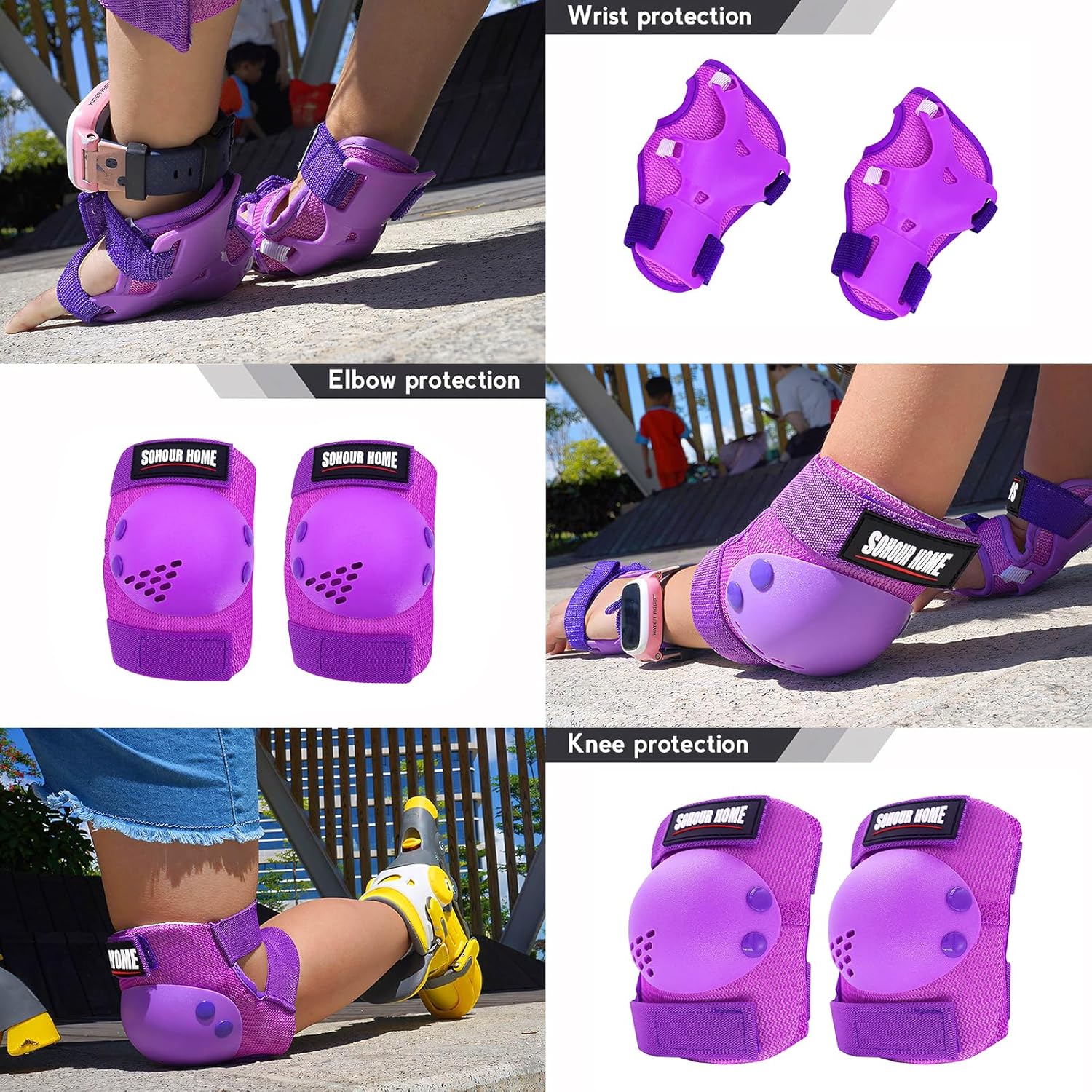 - 🌸【Multifunctional Knee Pads Set】SOHOUR HOME Kids Knee Pads/Elbow Pads/Wrist Guards Protective Gear Set for 3-15 Years Child Roller Skates, Cycling, BMX Bike, Skateboard, Inline Skating, Balance bike, Scooter Riding and Outdoor Extreme Sports Safety Protection Especially.