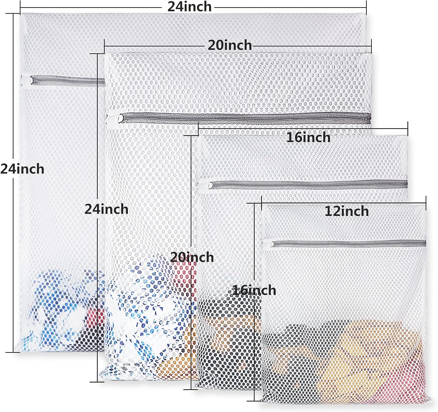 - 4Pcs Set,Perfect Combination (4 PackSets):1XXL (24 X24 inches),1XL(20 X24 inches),1L(16 X20 inches),1M(12 X16 inches) laundry mesh bag. This delicate laundry wash bag set can meet most family of 4 or 5 demand. ,more clean. Suitable for washing clothes, jeans, underwear, socks and other clothing, as well asbath towels and other household items,24 inches X 24 inches Suitable for , Jeans And Other Large Clothing, As Well AsBath Towels, Bed Sheets, Tablecloth, Curtains And Other HouseholdItems.