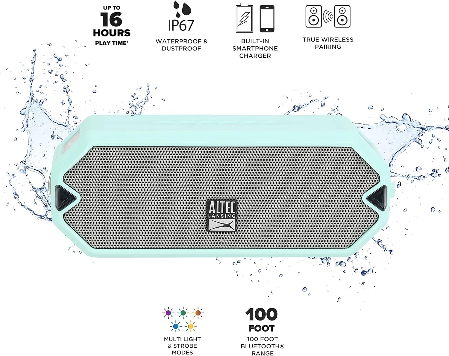 Altec Lansing - HydraJolt Wireless Bluetooth Speaker, Waterproof Portable Speakers with Built in Phone Charger and Lights, Everything Proof Outdoor, Shockproof, Snowproof, 16 Hours Playtime