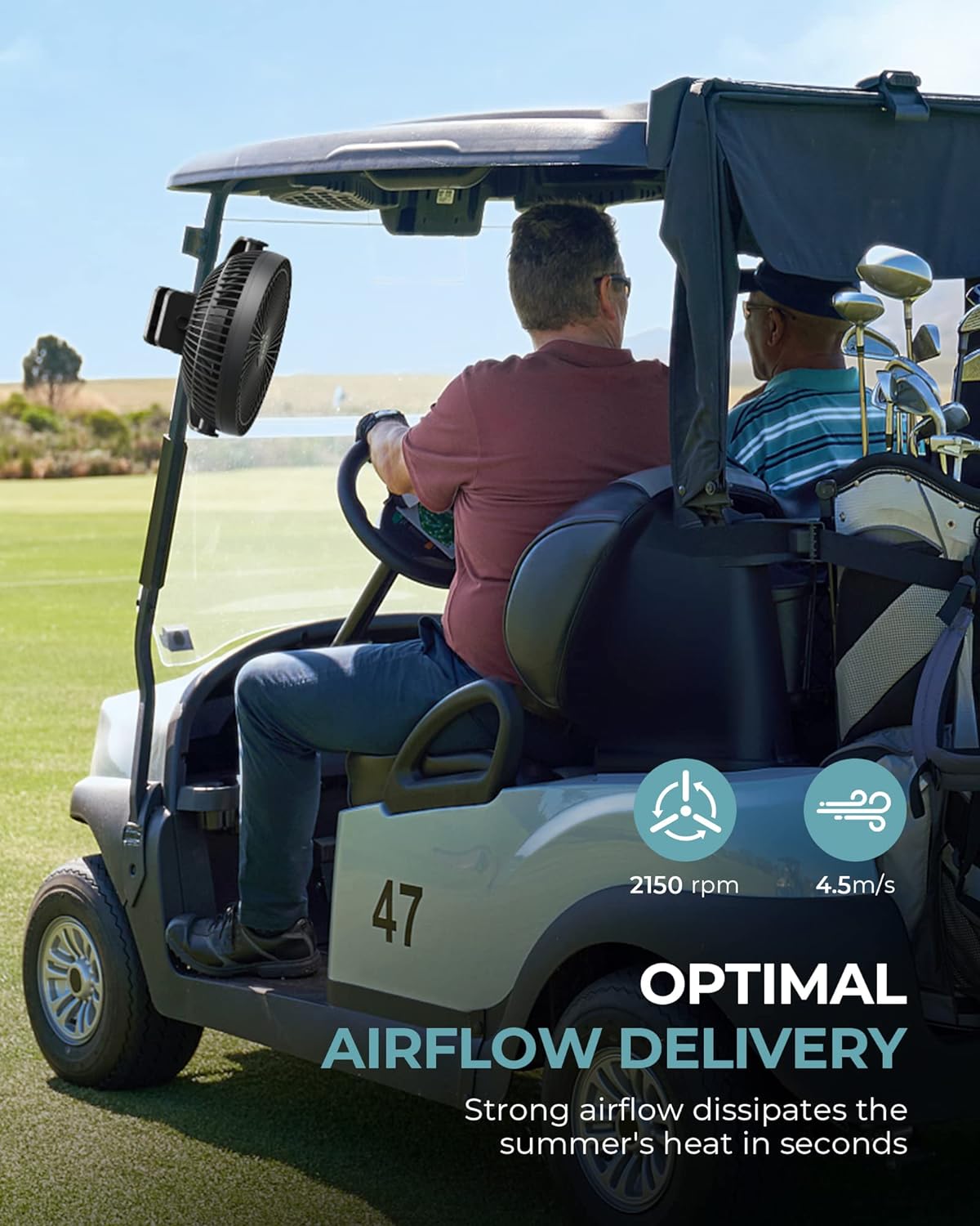 - Compact Size: This rechargeable fan is equipped with a robust clamp. You can easily place it at a corner of your desk, beside your treadmill, in your golf cart, besides your bed, or anywhere you like to have strong airflow. Its compact size doesn't take up much space