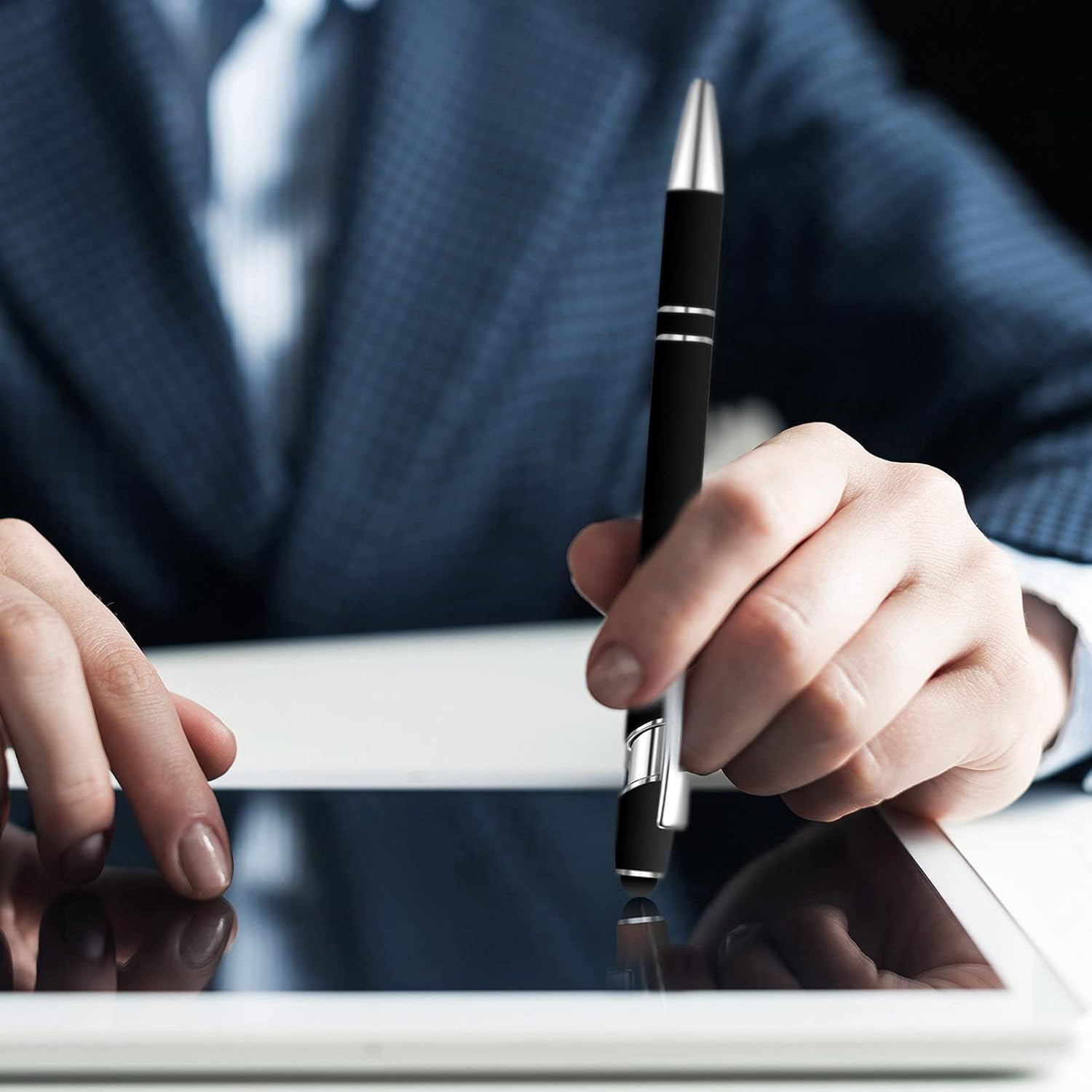 - Practical design: the 2-in-1 design gives this pen more functions; You can use it to take notes not only on paper, but also on your phone or tablet screen; More importantly, it doesn't need to charge, which will save you a lot of trouble; The double ring design in the grip can increase the friction force and prevent you from falling off easily when you grasp it