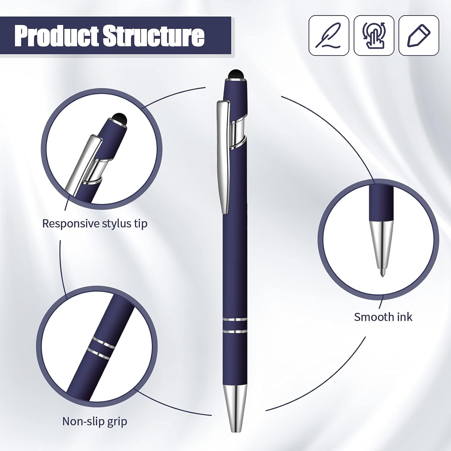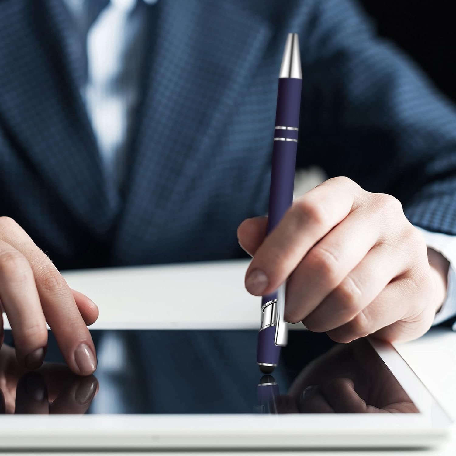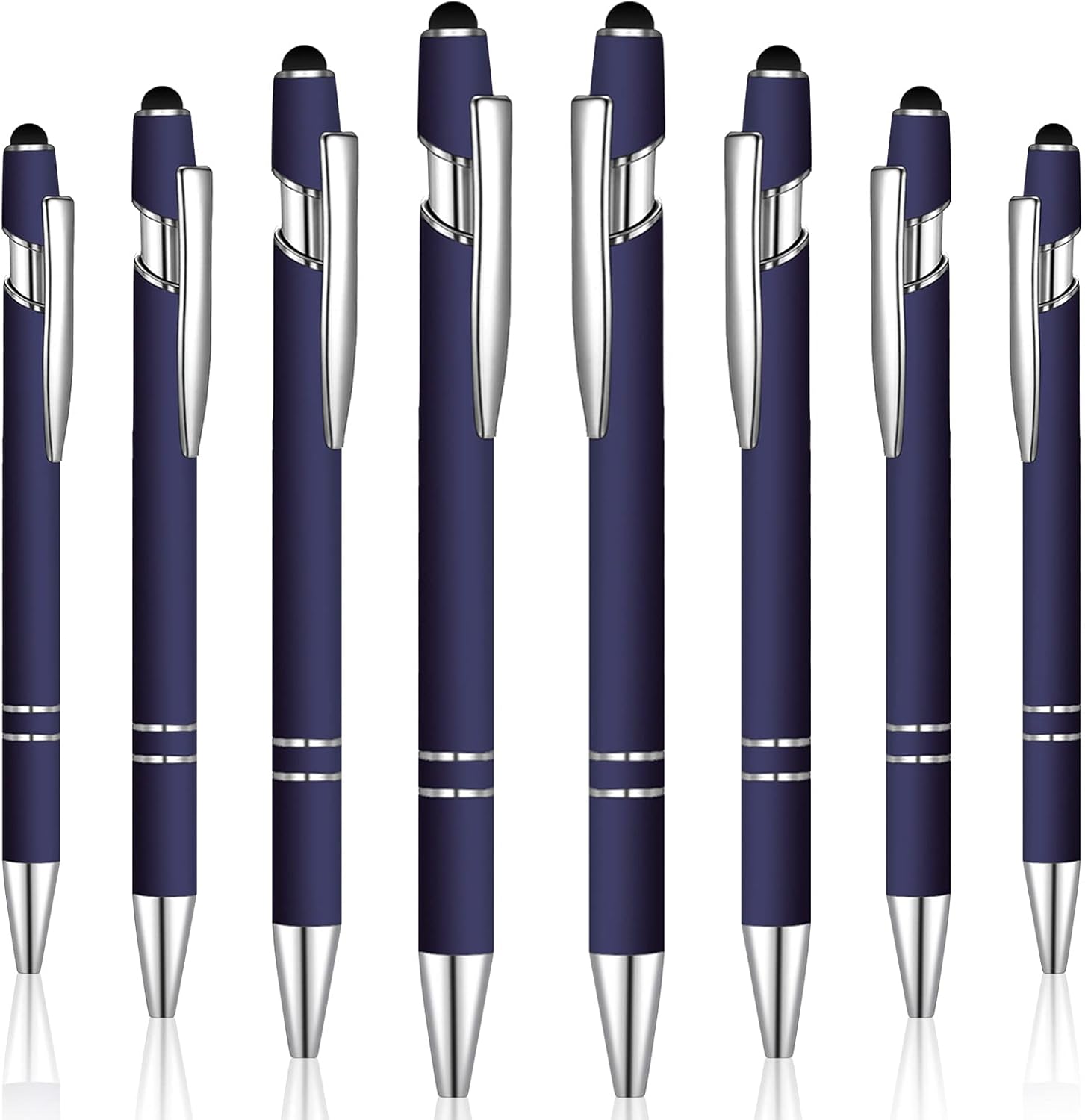 8 Pieces Ballpoint Pen with Stylus Tip Black Ink 2 in 1 Stylus Metal 1.0 mm Medium Point Smooth Pen Rainbow Colorful Rubberized Ballpoint for Touch Screen Tablet(Dark Blue)
