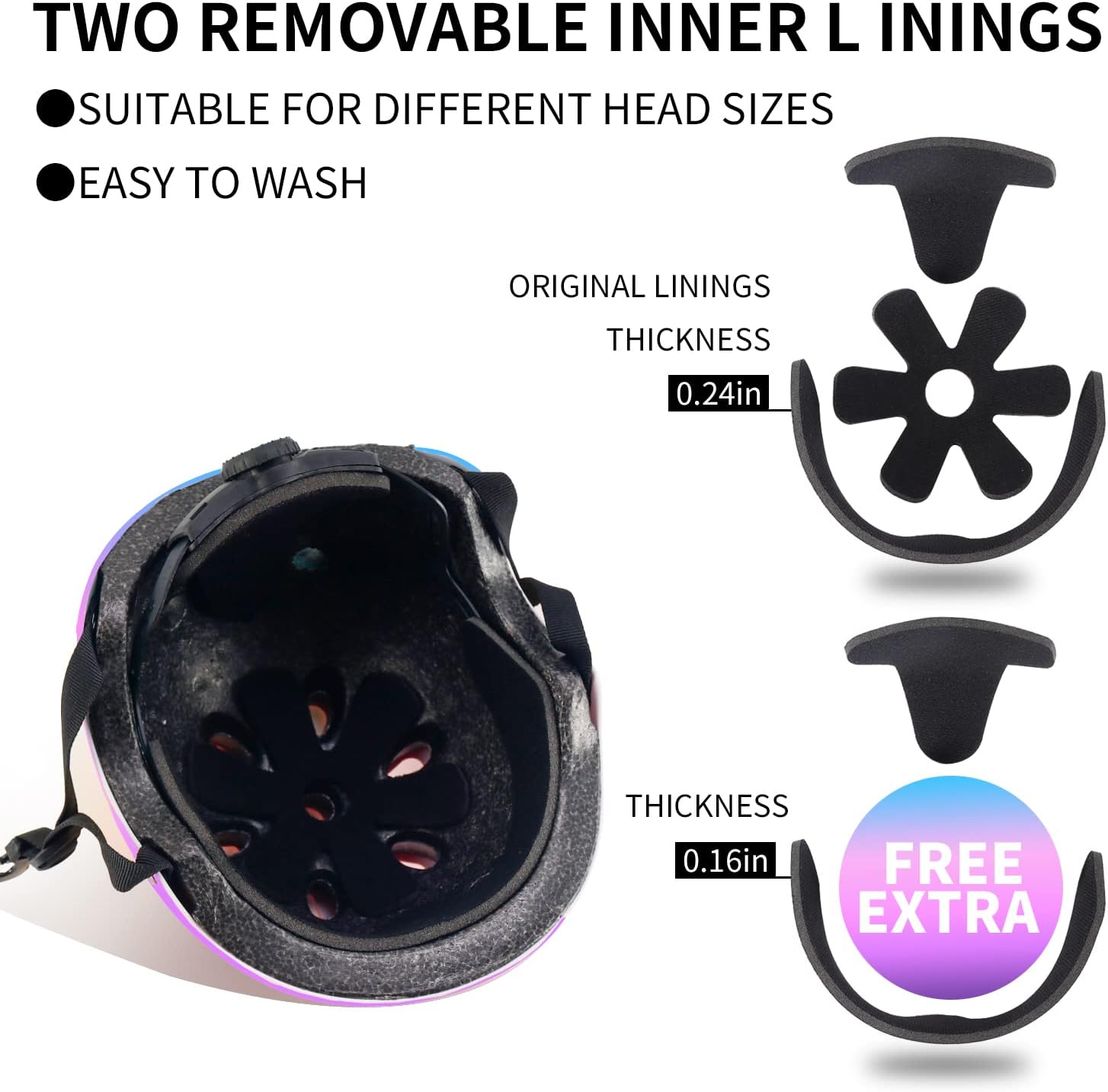 Adjustable Color Gradient Skateboard Helmet for 3-5-8-14+Ages【Toddler Kids Youth Adult】 Girls Boys Woman.Bike Helmet for Multi-Sports Cycling Bicycle Scooter Inline Roller Skate Rollerblading