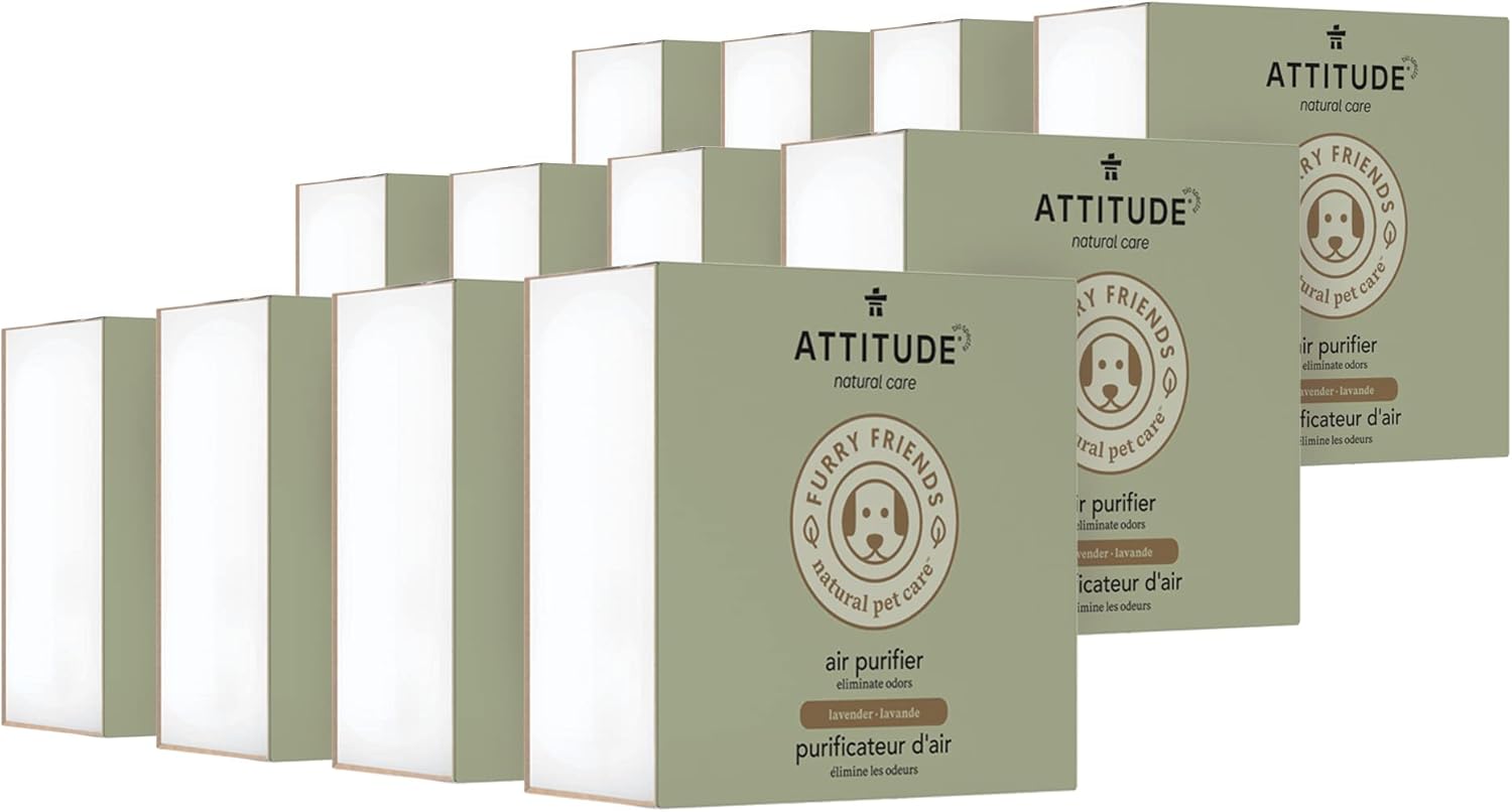 ATTITUDE Air Purifier, Activated Carbon Freshener, Odor Remover, Plant and Mineral-Based, Vegan, Lavender, 8 Ounces (Pack of 12)