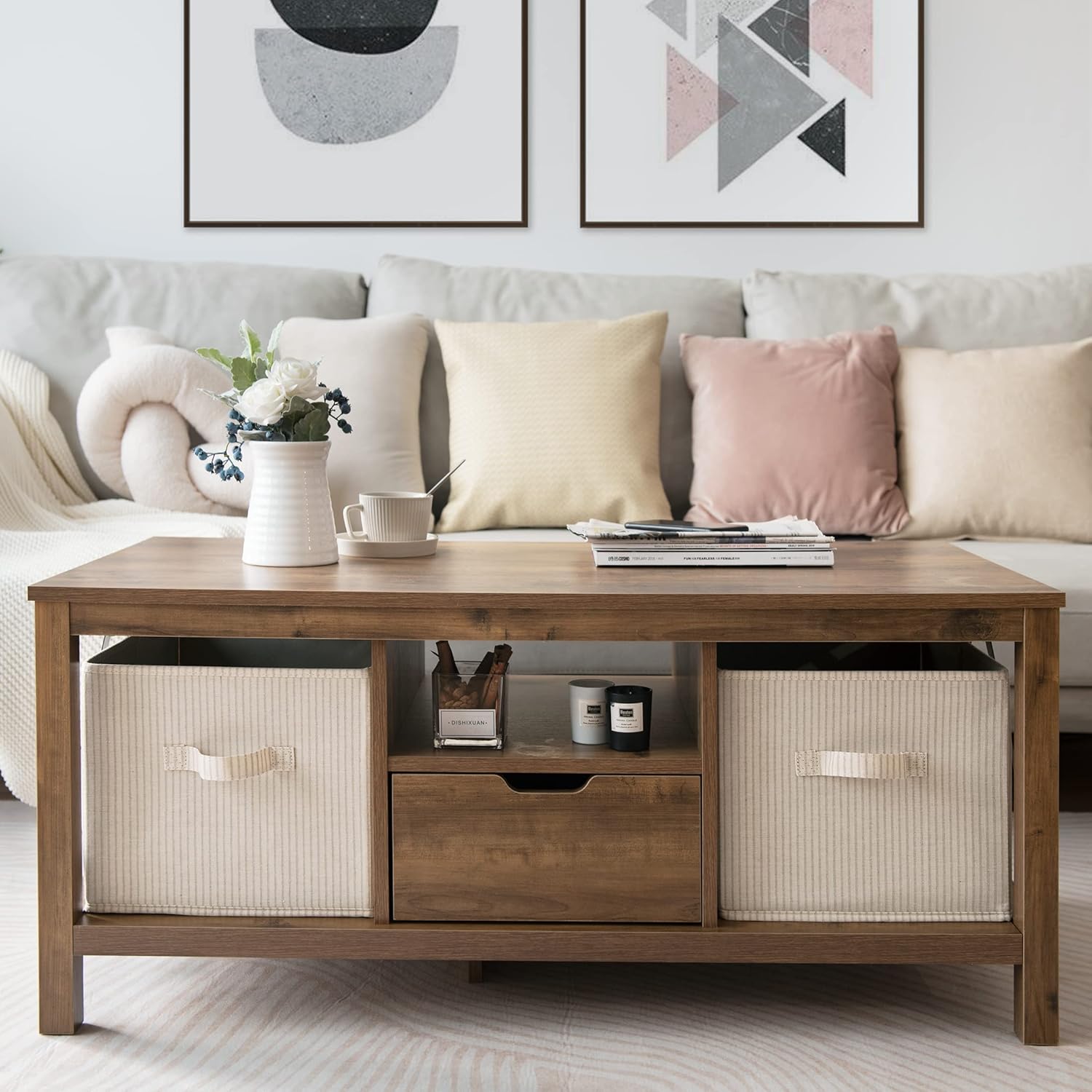 StorageWorks Storage Baskets for Shelves, Foldable Fabric Closet Storage Bins with Handles, Fabric Storage Bins Clothes Organizer, Beige Stripes, 3-Pack, Extra Large