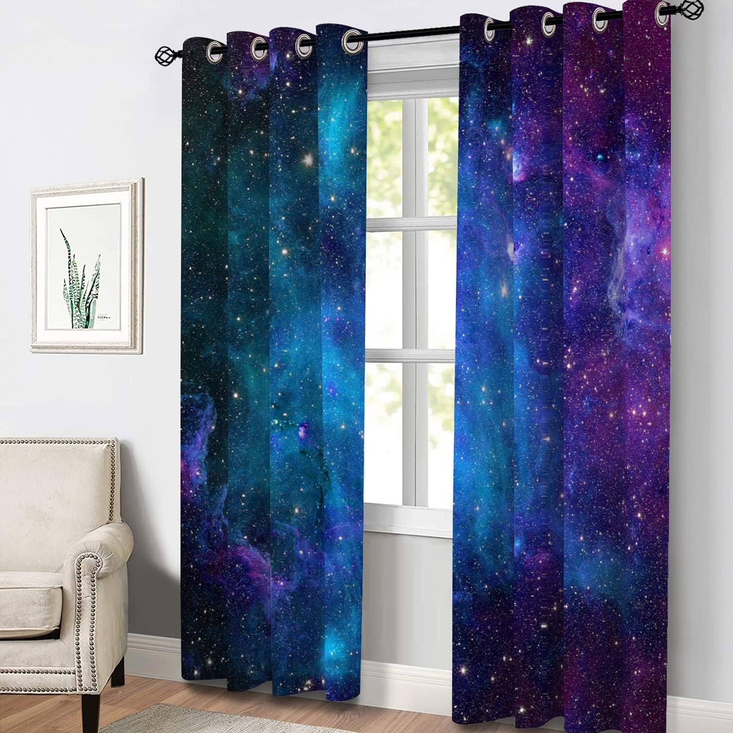 Aimego Galaxy Blackout Curtains Outer Space Universe Nebula Night Starry Decor for Kids Boys Teens Bedroom Living Room Window Drapes Grommet Top Room Darkening Curtains 2 Panel Set, 52"X84"