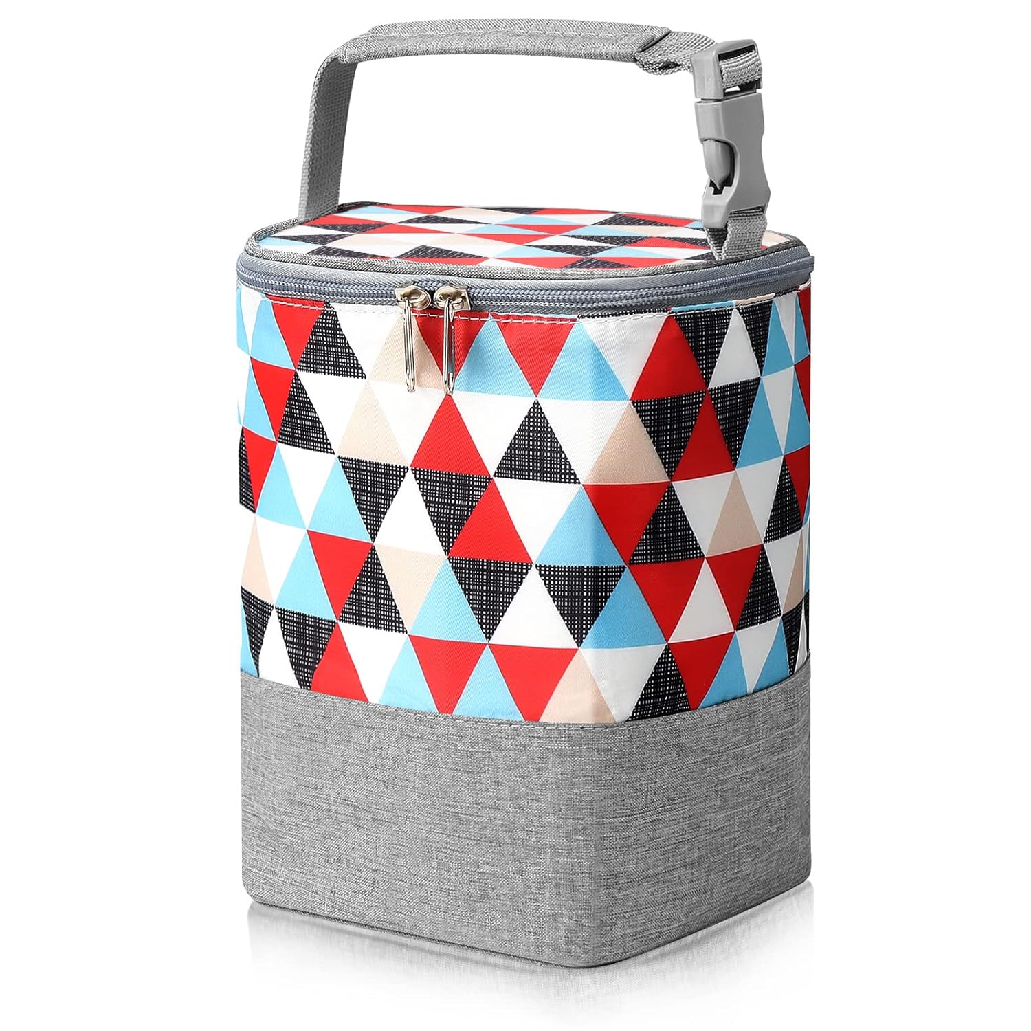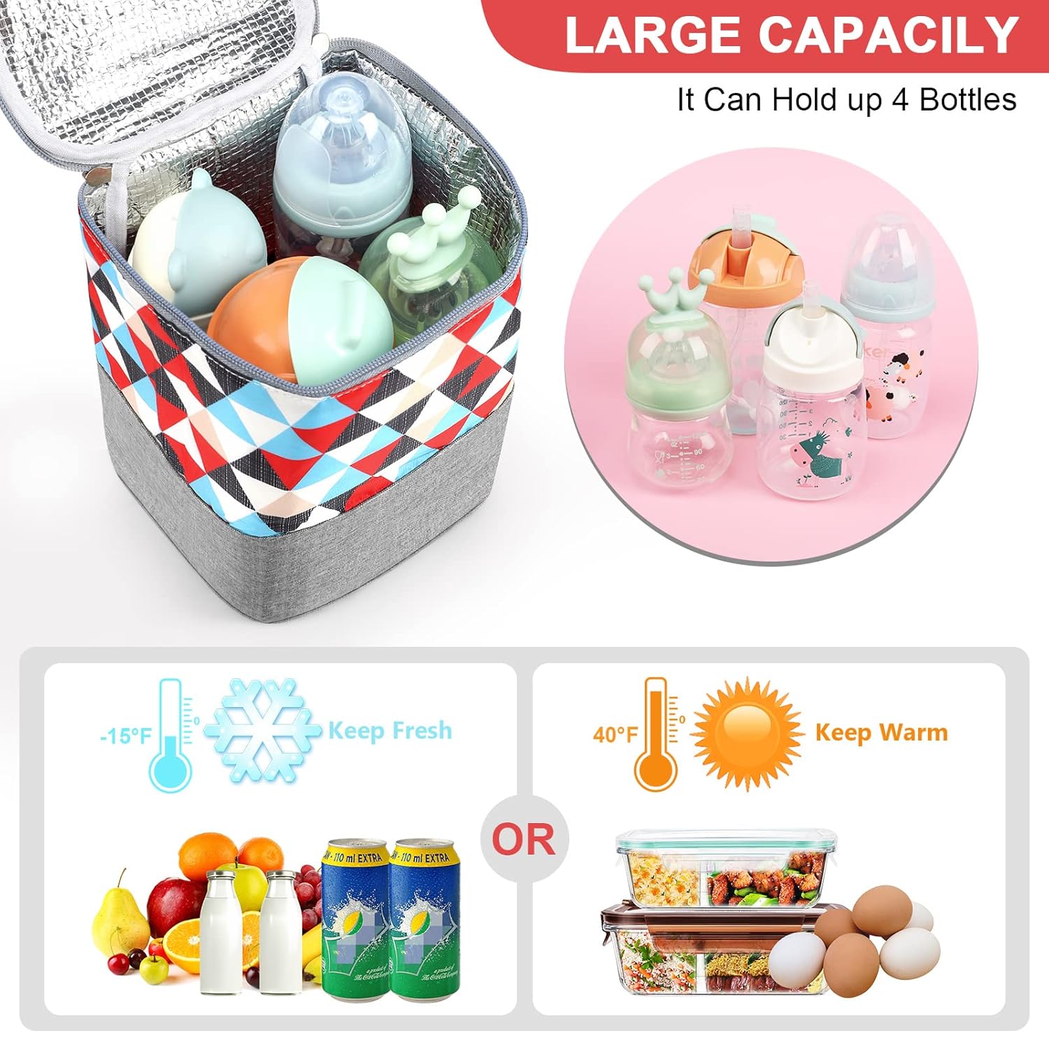 - LARGE CAPACITY: The milk bottle cooler bag's size is 9.05 x 5.9 x 5.9(in)/23 x 16 x 16(cm). Suitable for up to 4 large 8oz baby bottles at once, meet baby daily needs. Perfect cooler bag for transporting breast milk from work to home or leave with daycare. It also can be used as lunch bag.