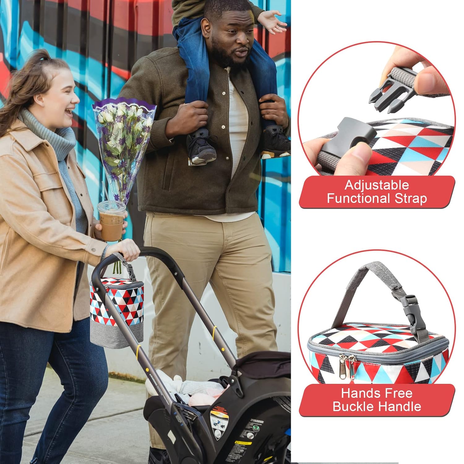 - PORTABLE WITH DETACHABLE BUCKLE: The detachable buckle design of the reusable baby bottle bag ensures you two portable carry ways, handhold or hanging on a stroller, together with soft nylon handle, let you carry the bottle bag effortlessly and comfortably.