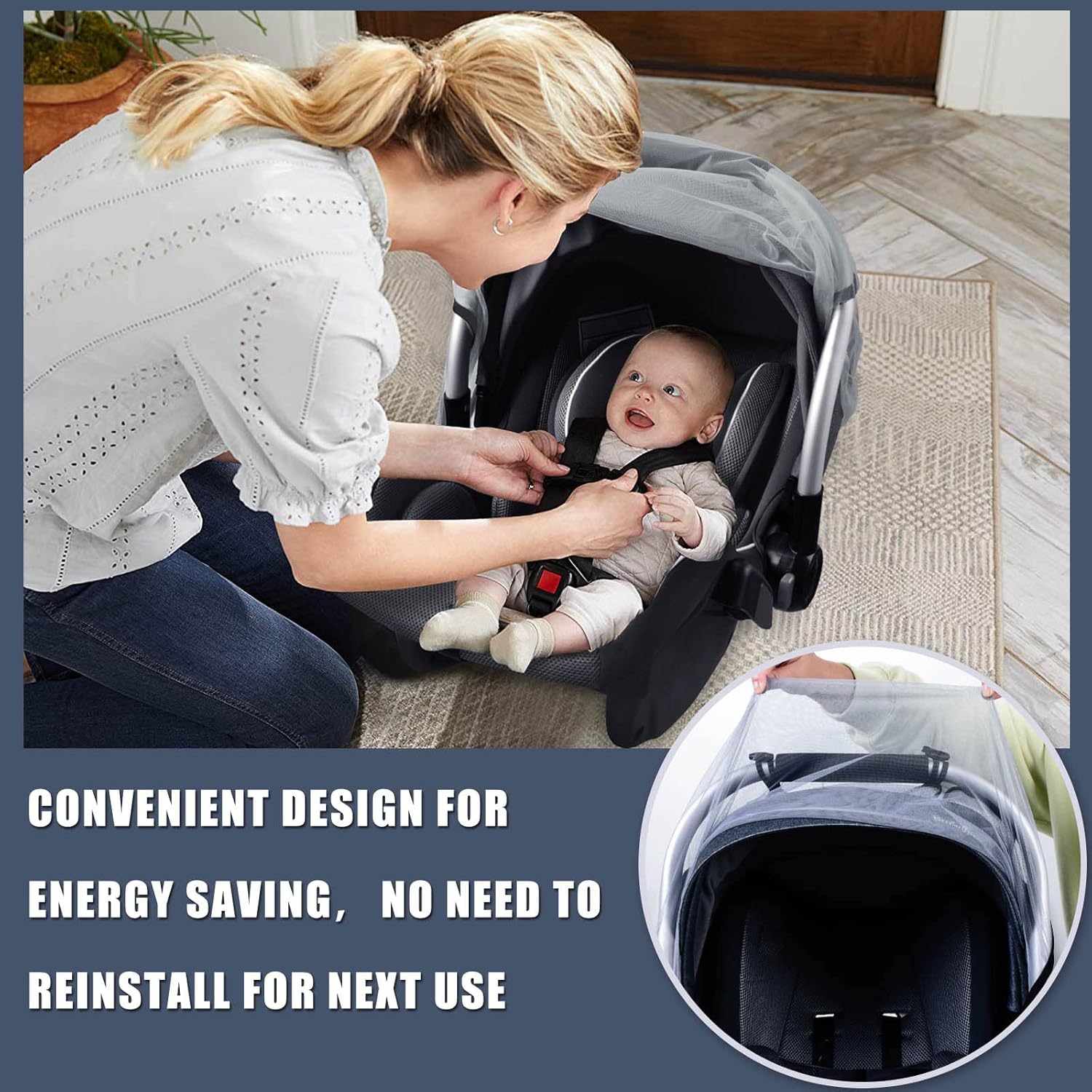 - EASY AND QUICK TO INSTALL: Unique design in the market-double olive designs for fixation for 1 time intalling for lating use. The baby insect netting universally fits most baby car seats and can be attached very quickly thanks to the elastic band.
