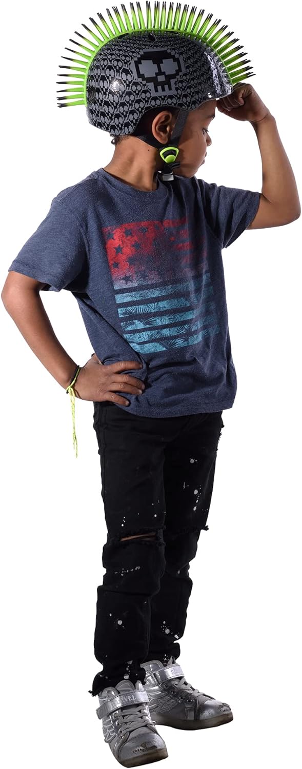 - DESIGN - Flexible 3D mohawk with digital gamer style skull graphics.