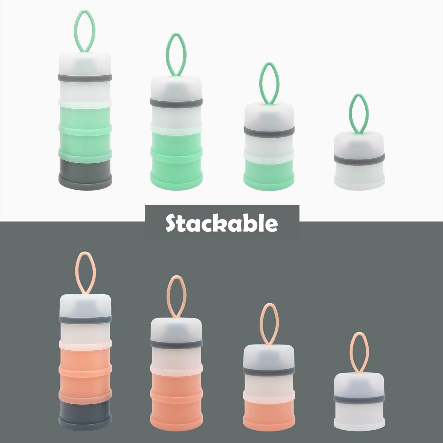- 4-layer design: Stackable - 4 compartments can be combined in different order and any quantities, can also be taken separately.You can put quantity of milk powder to be taken at one time in each layer box, you can carry 4 times of milk powder for baby outdoor need, very convenient and practical.