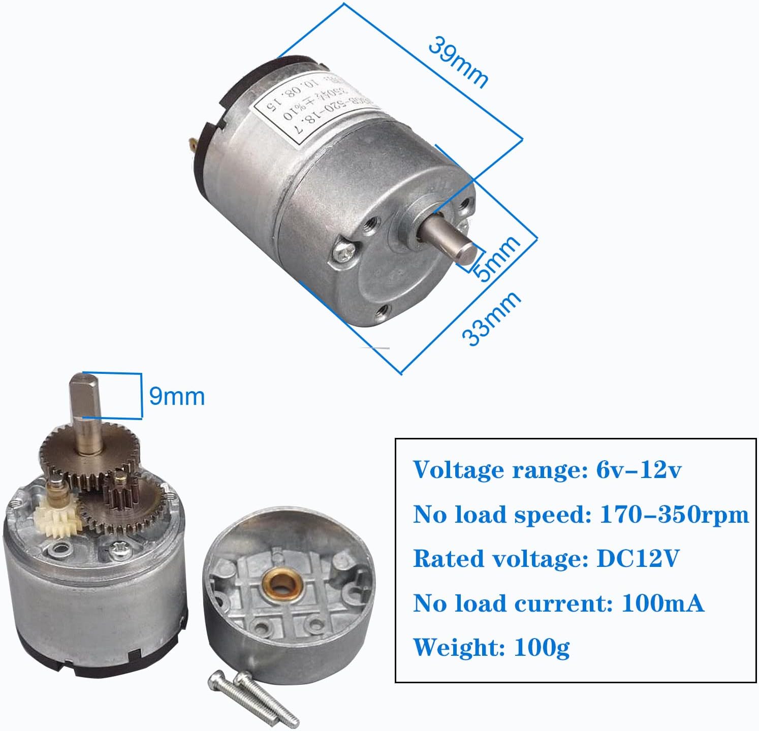 - High Torque Engine ▶DC Motors - Engine is very important for a robot car chassis. This mecanum car chassis kit uses 4pcs high toque 33 DC reduction motors with the no-load speed, 170-350rpm, output voltage 6-12V. So, the robot mecanum chassis can provide stronger power for moving with the improved speed. Inside, the DC motor gear is made of metal, more sturdy.