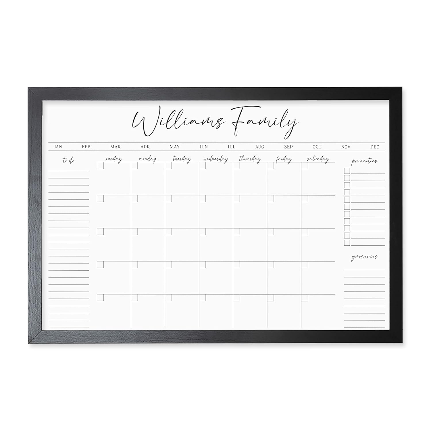 Personalized Dry Erase Wall Calendar with Custom To do list and Notes Organization Sections | Large Whiteboard Calendar (36" W x 24" H, Black Frame)