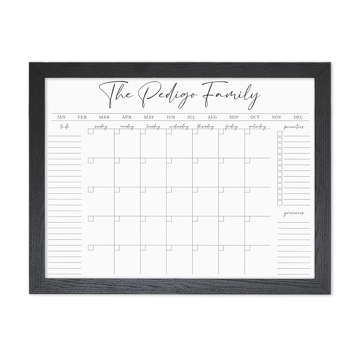 Personalized Dry Erase Wall Calendar with Custom To do list and Notes Organization Sections | Large Whiteboard Calendar (24" W x 18" H, Black Frame)