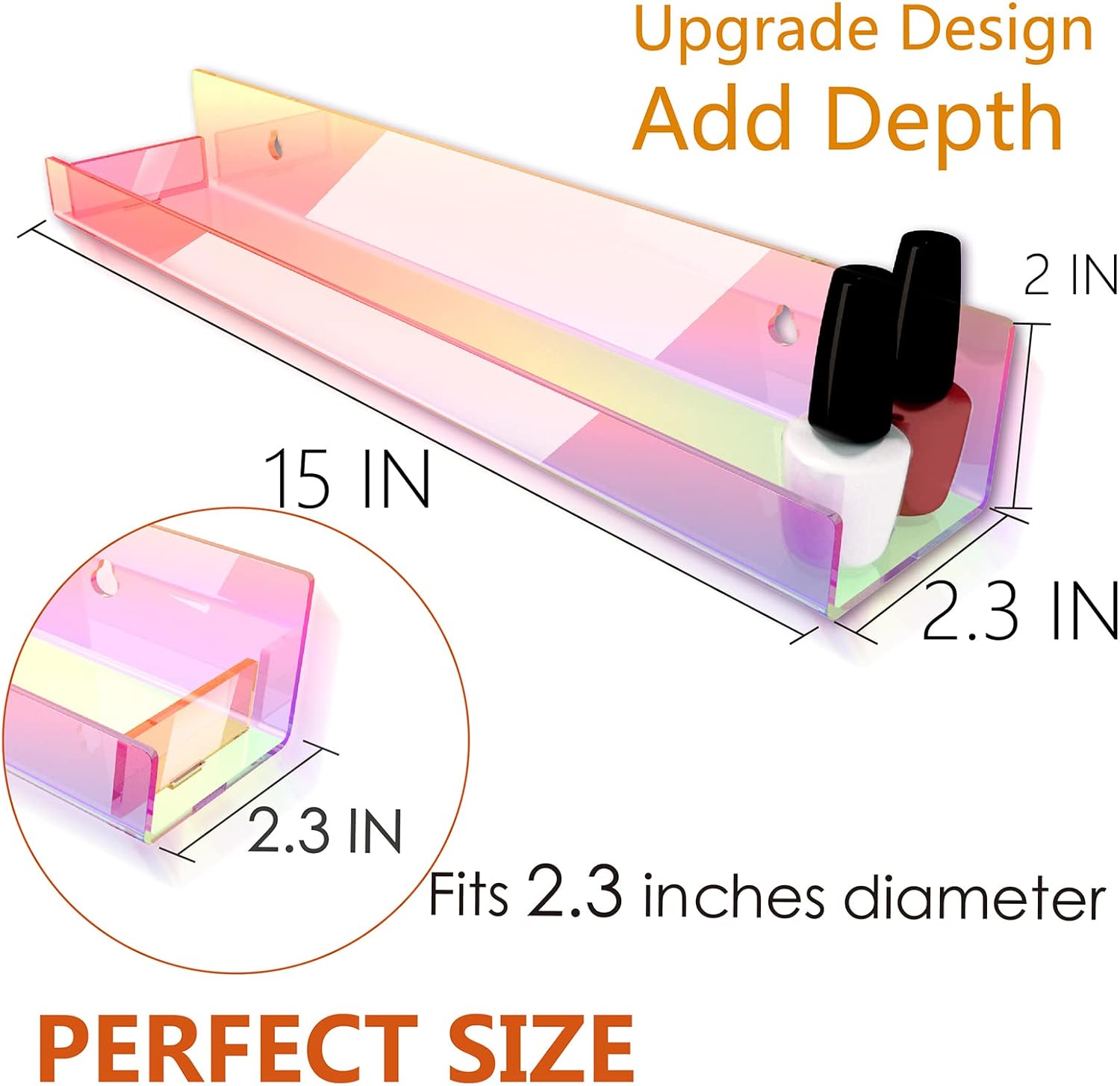 4 Pack 15 Inch Iridescent Acrylic Shelves, Clear Rainbow Floating Shelves for Wall, Modern Sunglasses Essential Oil Picture Ledge Display Toy Storage Wall Shelf