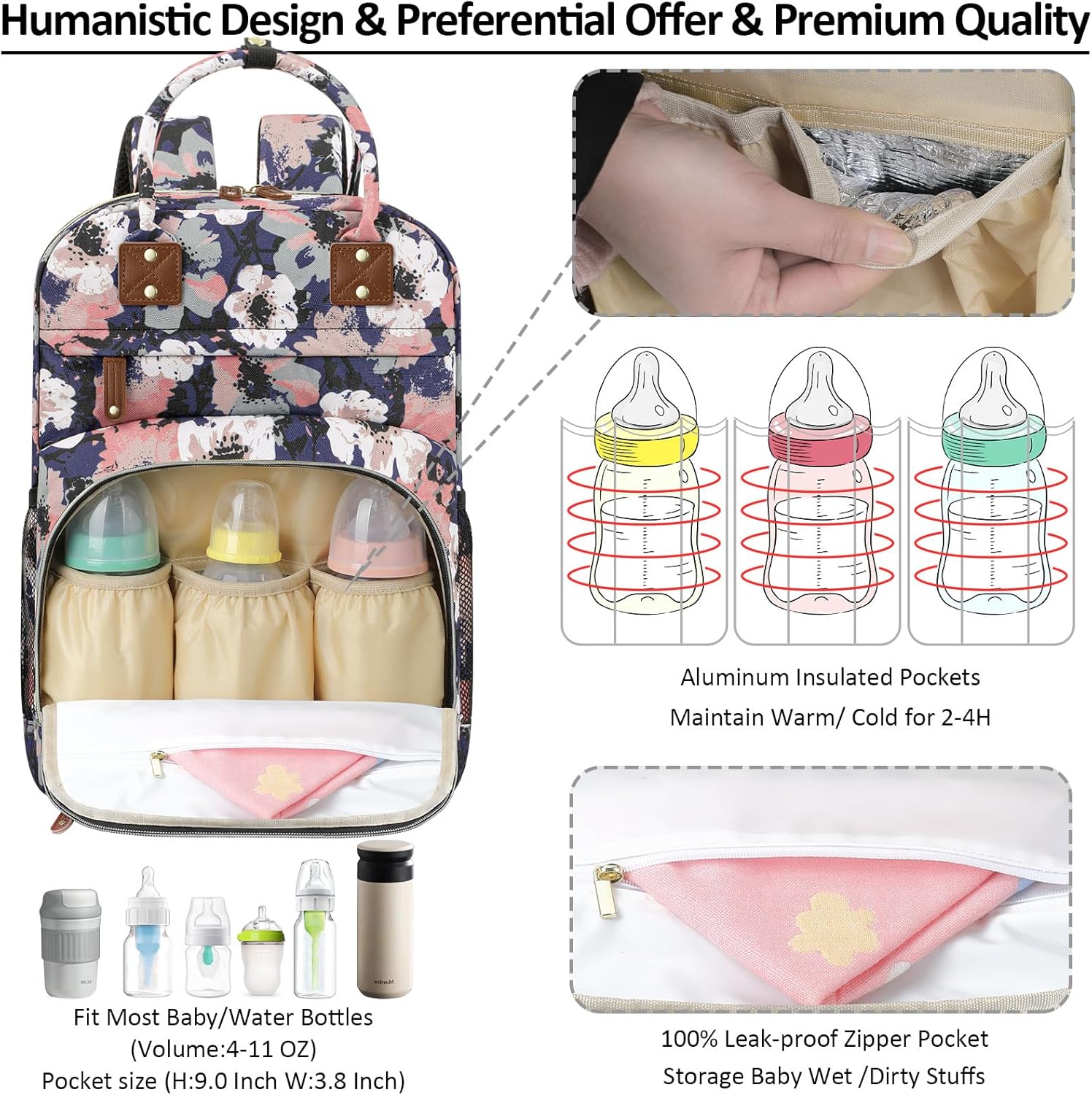- Impressed With Overall: Tenot baby backpack diaper bag only 1.54 lbs, but comes with 10 pockets and spacious to keep diapers, breast pump, wipes, formula, toys, cell phones, baby bottles, books, laptop, clothes well organized; The quality is top-notch, strong zipper, sturdy stitching, detachable stroller straps; Especially has 3 insulated bottle pockets to keep warm/cold 2-4 H; This makes diaper bag purse very durable and will not easily fall apart; A good bet baby boy baby girl diaper bag