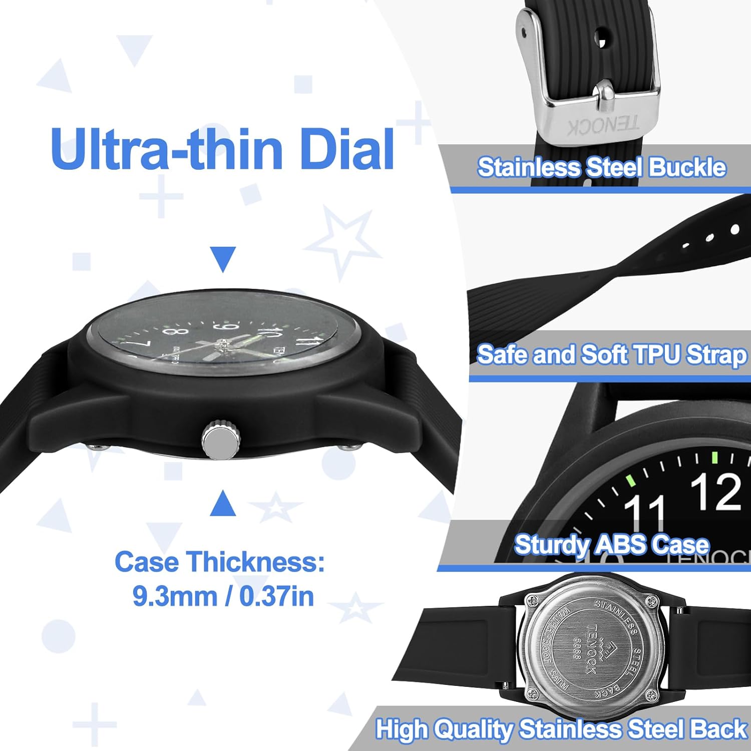 • [5ATM Waterproof Analog Kids Watch]: Life waterproof, can wash hands, splash, rain, etc., but can not be used in high temperature, and can not pull out the knob in the water.