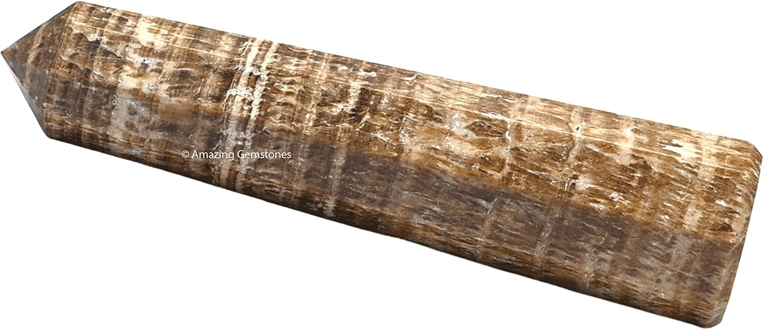- Aragonite Crystal Tower will uplift and purify the energy (if its point is not damaged), so you can place it in any area that needs to be re-energized with strong energy. Length of this tower / wand / obelisk / point is 3" inch to 4" inch (7.5cm to 10cm) & width is 0.75 inch (2 cm).